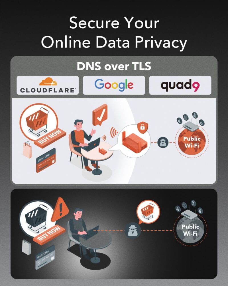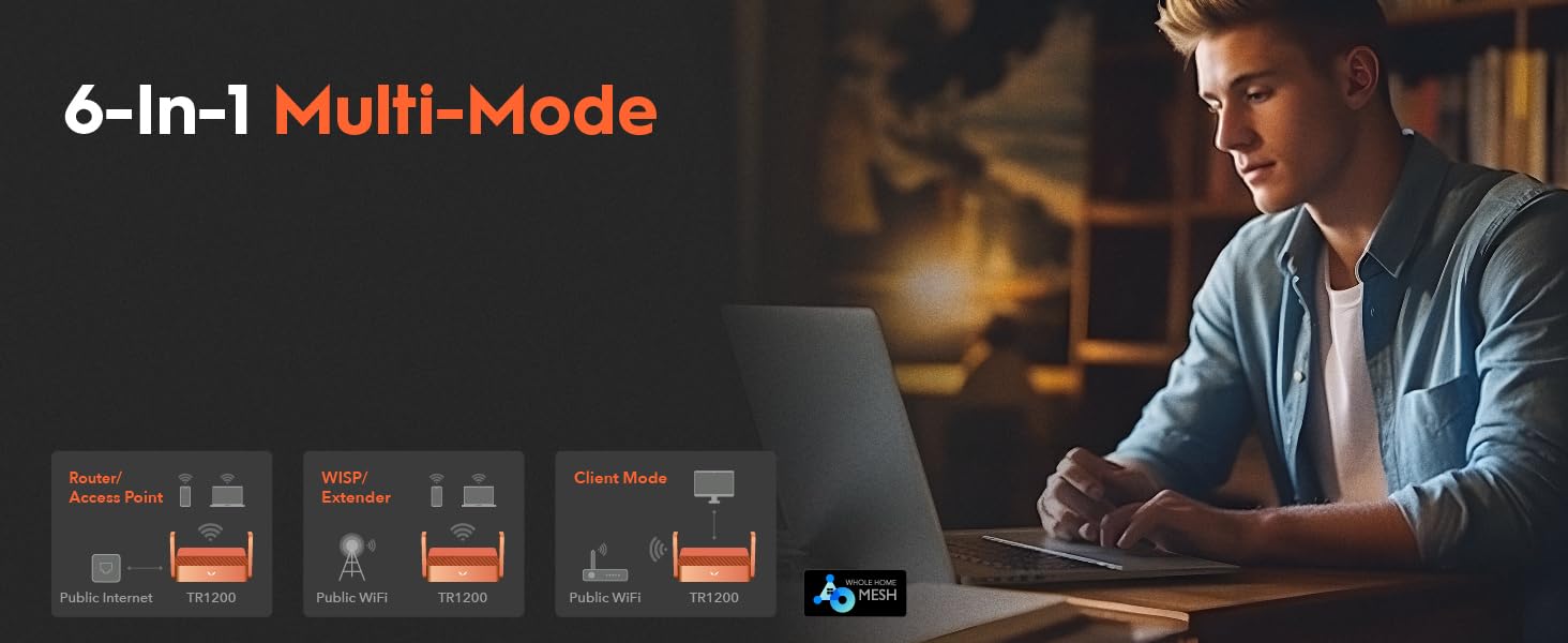 Easy to share hotspot Combined with multiple operating modes, including Wi-Fi router mode, wireless access point mode, WiFi extender mode, WISP mode, which is easy to convert public networks (wired/wireless) to private Wi-Fi for safe surfing.