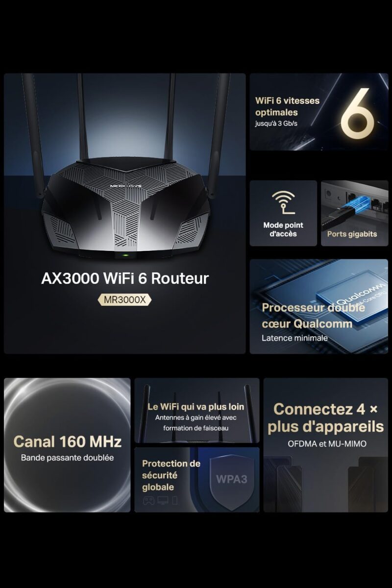 / Безжичен рутер Mercusys MR3000X AX3000 Dual Band WiFi 6 Router
