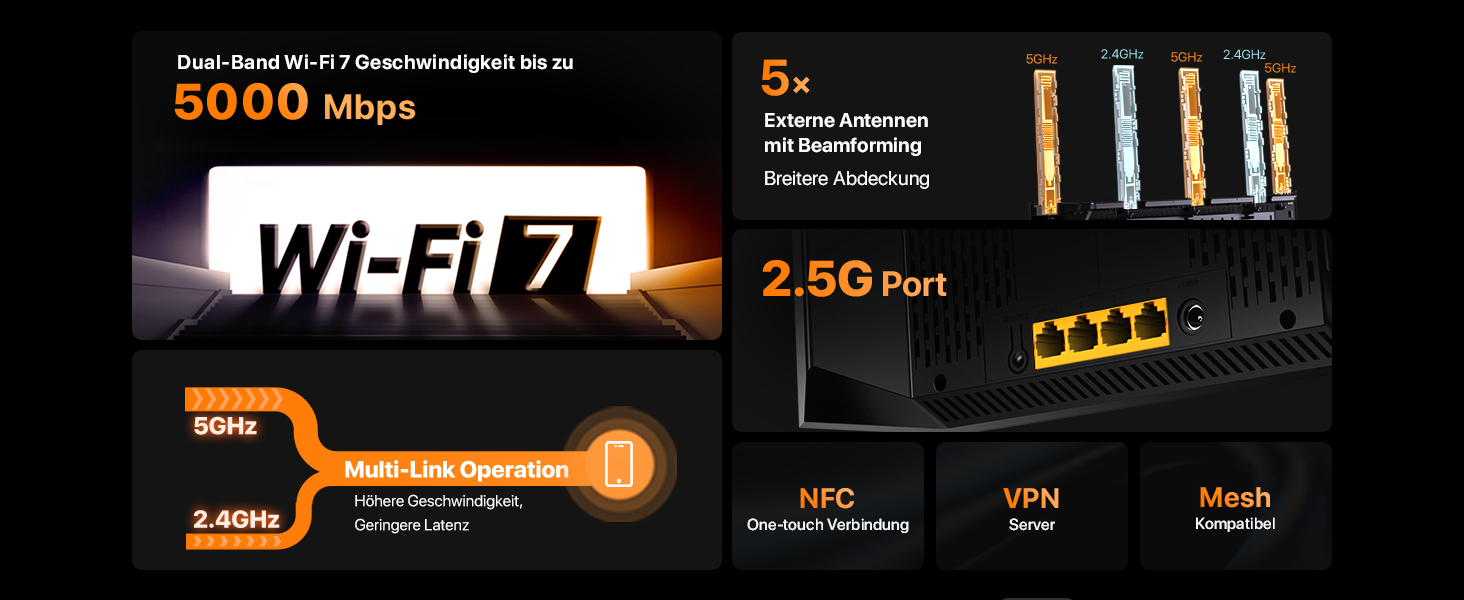 / Безжичен рутер Tenda RE6L Pro Dual-Band BE5100 WiFi 7 Mesh Router