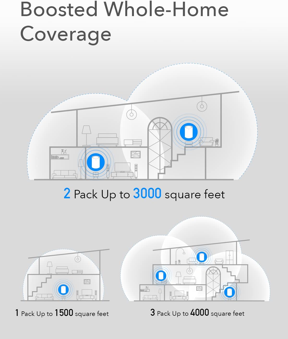 Whole house network, dead spot removal The advanced Wi-Fi network system for the whole household provides smooth video transmission and fast online games for more devices at the same time.