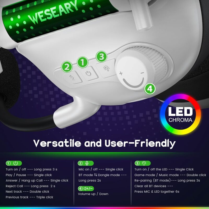 Безжични геймърски слушалки WESEARY WG2 Bluetooth Headset White