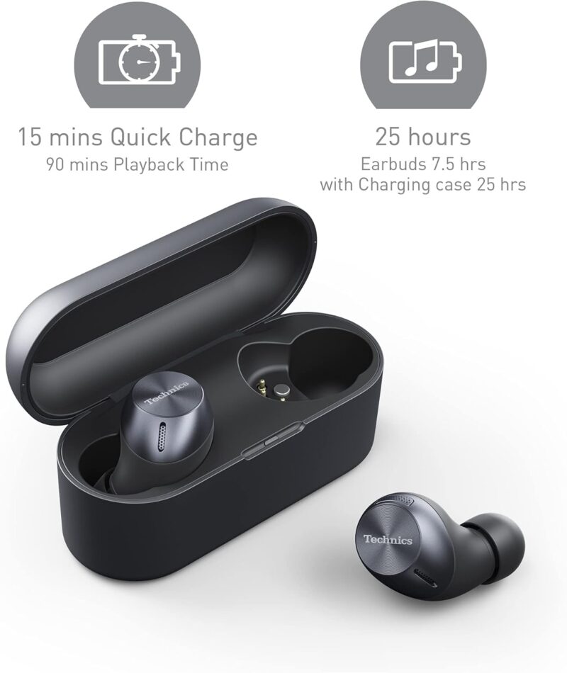 True wireless headphones with best Technics sound quality – clear highs, balanced mids and deep bass guarantee excellent sound