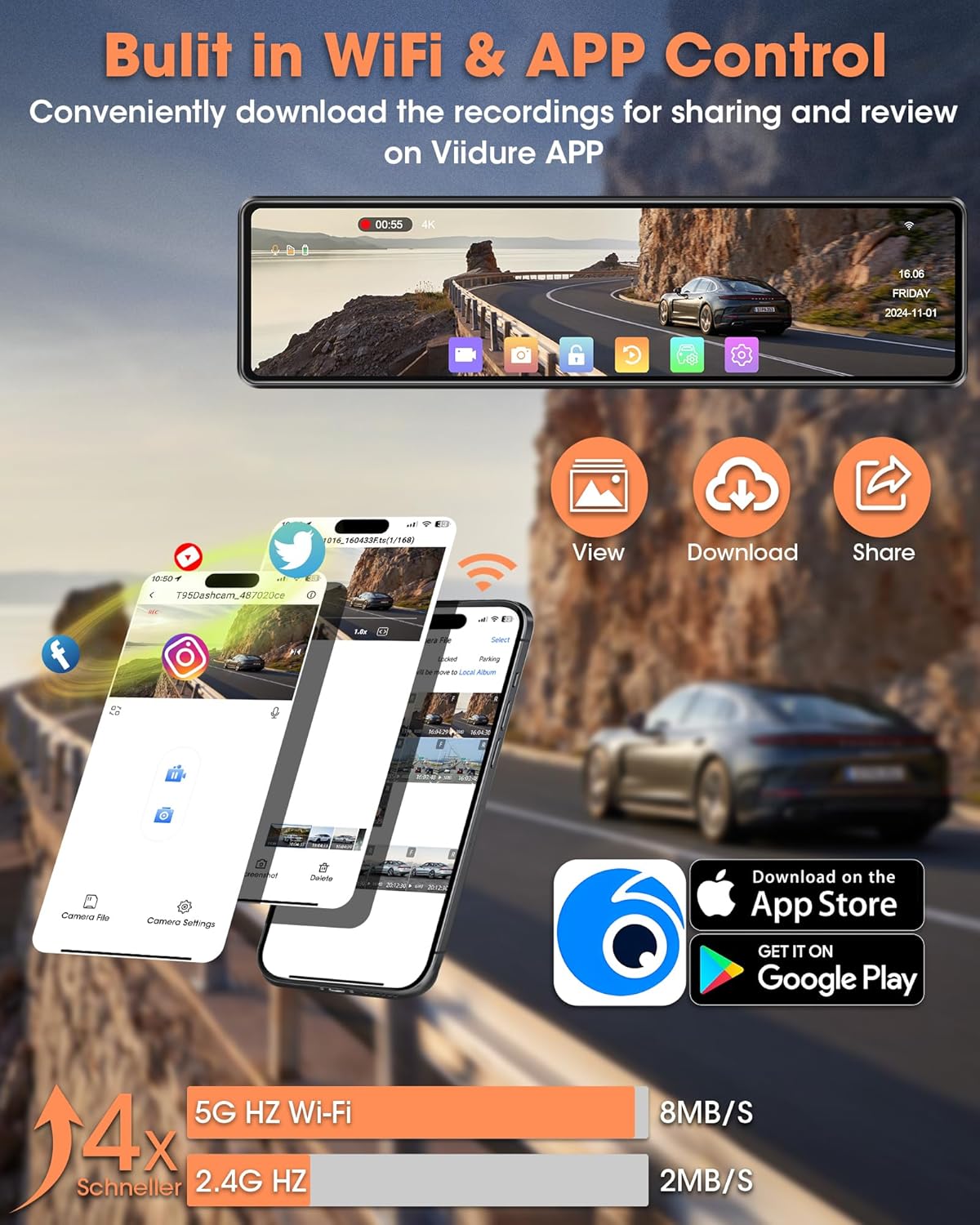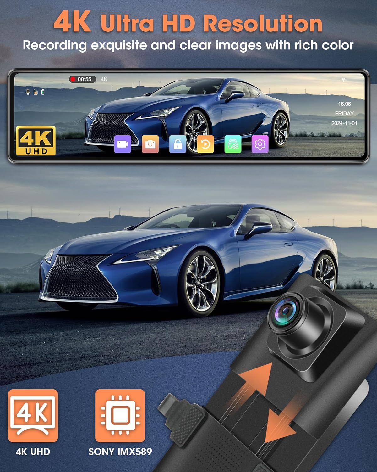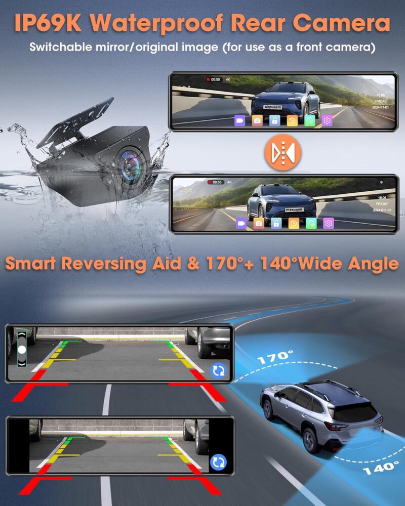 количество за Видеорегистратор Огледало Airpuxem T96 4K WiFi Dash Cam 64GB SD