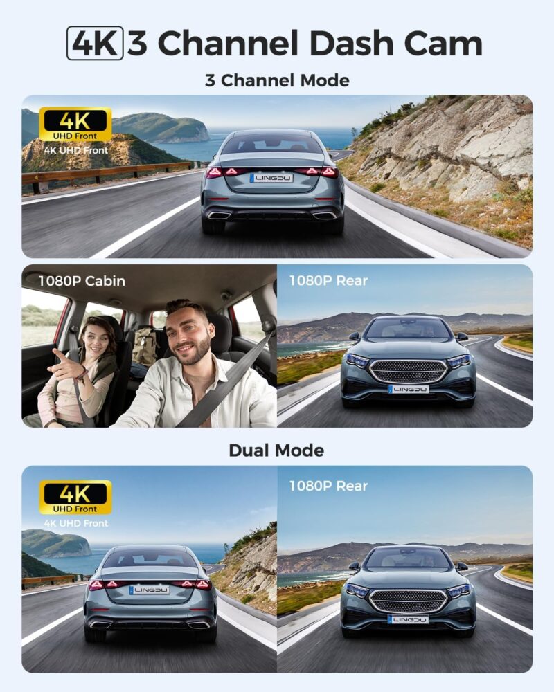 / Видеорегистратор LINGDU V630 GPS 4K + 2 x 1080P 3 Channel WiFi Dash Cam