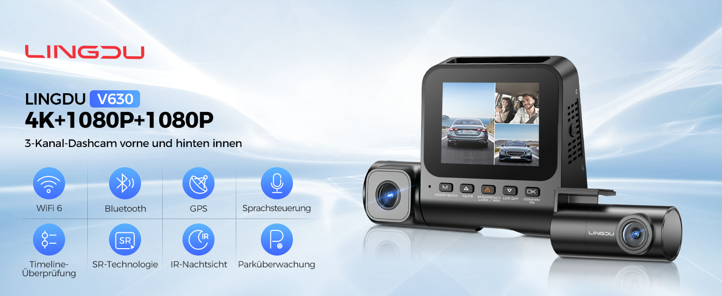 Видеорегистратор LINGDU V630 GPS 4K + 2 x 1080P 3 Channel WiFi Dash Cam