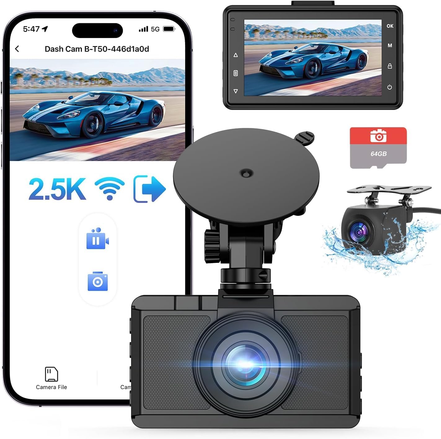 количество за Видеорегистратор Topabol 2.5K + 1080P WiFi Dash Cam 64GB SD