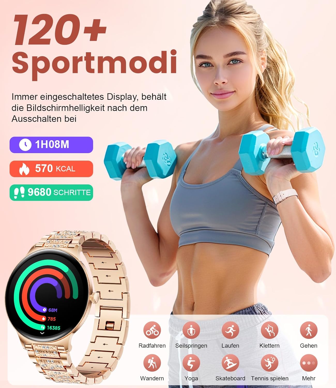Поддържайте връзка без усилие с Bluetooth разговори и известия за съобщения. Съвместим с устройства с Android 4.0+ и iOS 9.0+, този дамски смарт часовник с Android ви позволява да извършвате или получавате обаждания и да получавате известия директно от китката си, така че да не пропуснете важна информация. Тази функция повишава удобството и прави смарт часовника незаменим спътник в забързания начин на живот.
