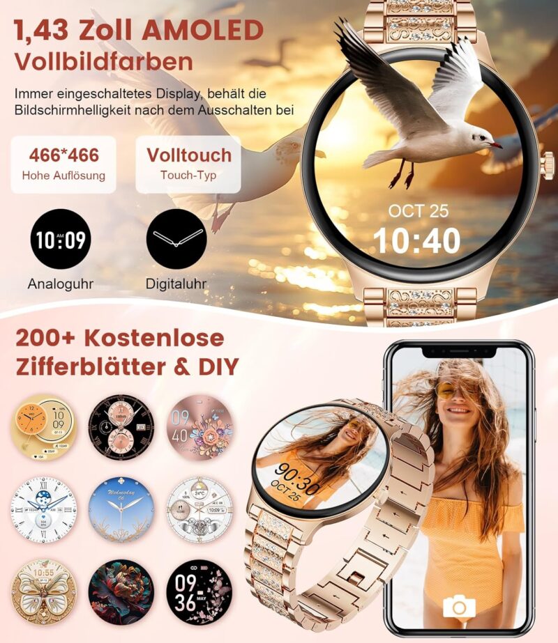 Дамски смарт часовник LIGE FV12 Women’s Smart Watch 1.43 Inch AMOLED Gold