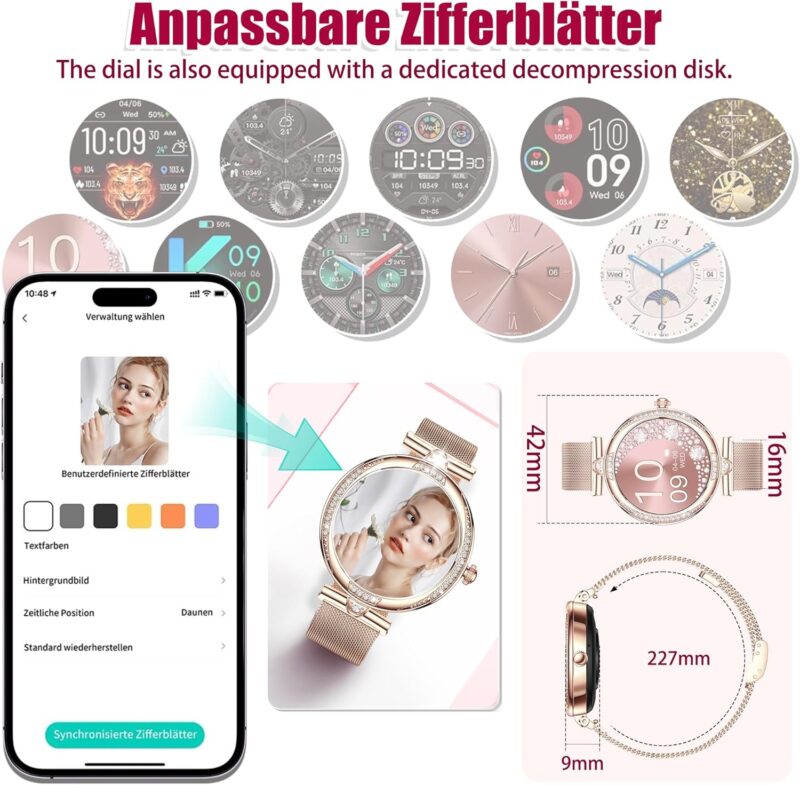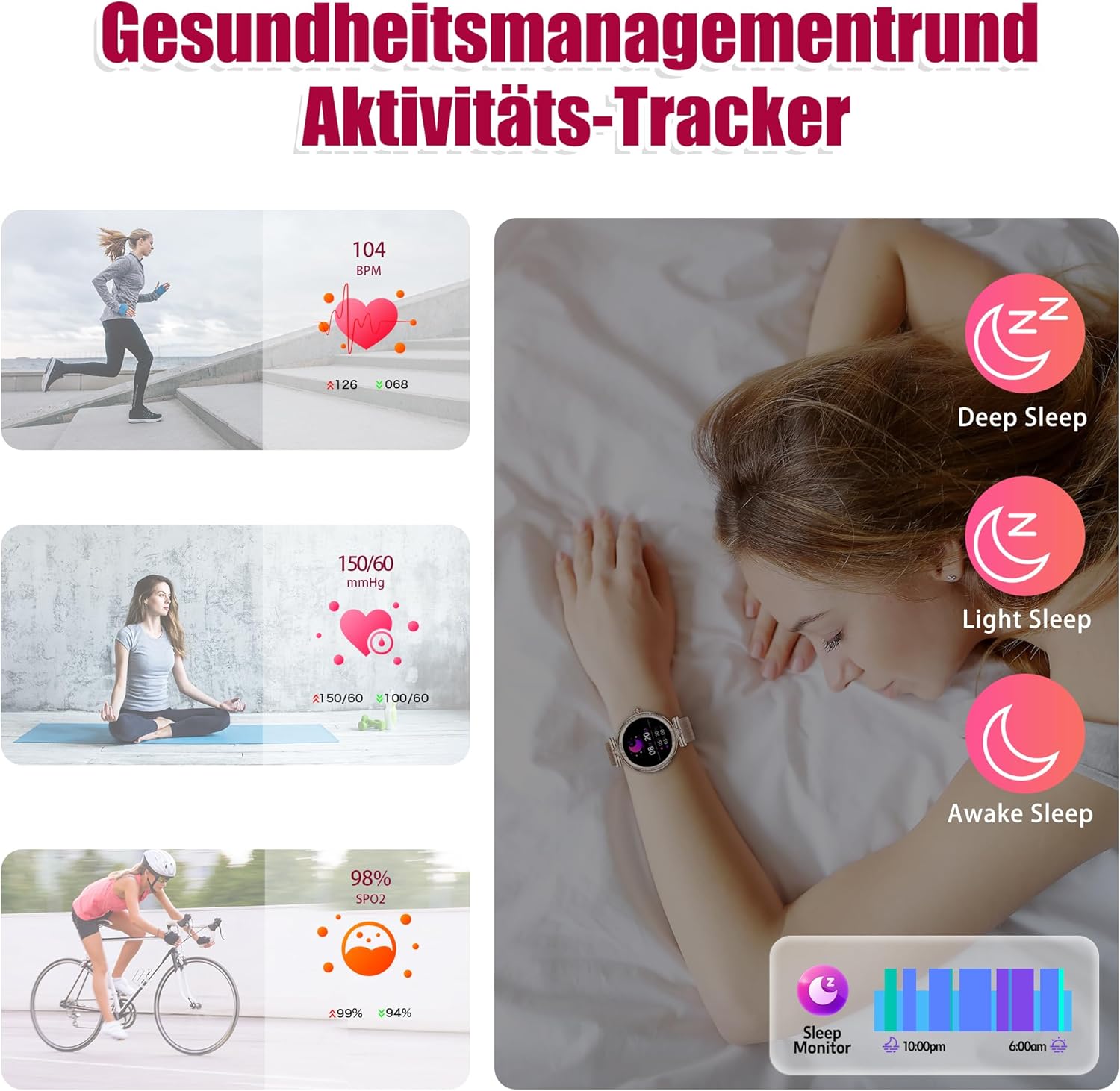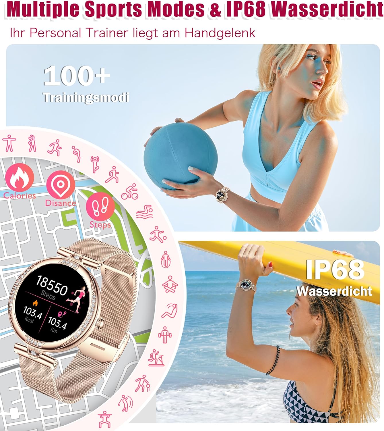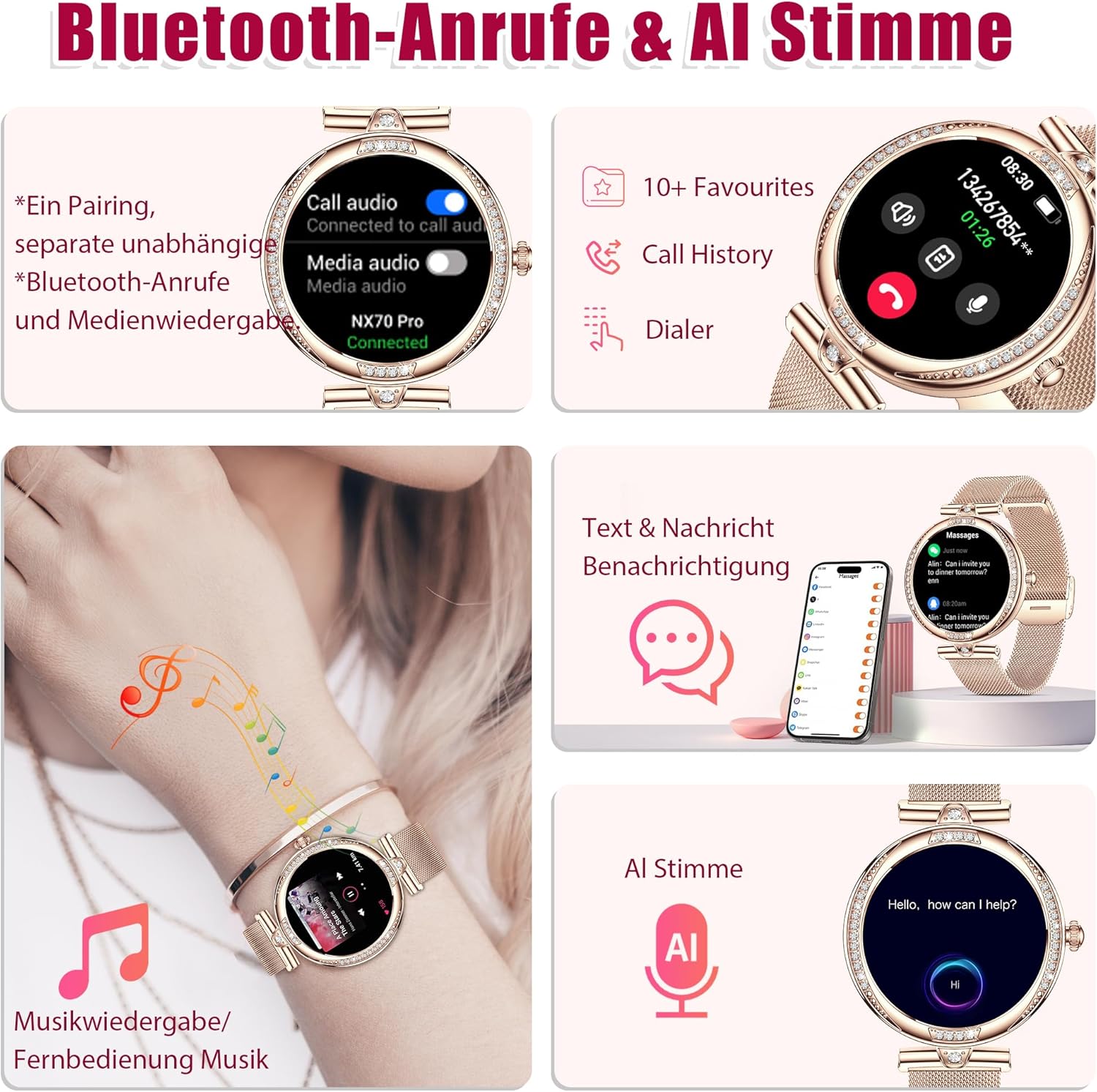 Bluetooth calls and information notification: the women’s smartwatch with phone function has Bluetooth calls, notification information and a music player. Built-in Hi-Fi speaker and microphone, you can hands-free calls directly on the smartwatch, play and control music. This smart watch has a built-in vibration alarm that notifies you of the latest calls and texts from SMS, Facebook, Twitter, Whatsapp, Instagram, Skype, LinkedIn, Gmail etc.