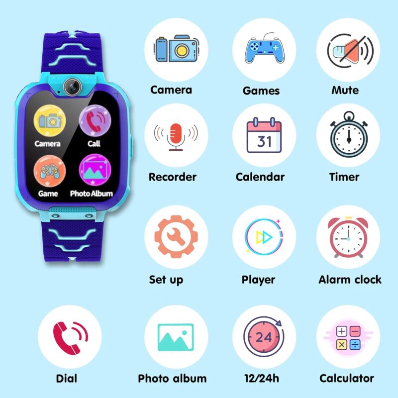 26 games and multiple background pictures: the children’s smartwatch has 26 puzzle games. Children can choose their favourite games to relax in leisure time. These games can perfectly train your child’s imagination, creativity and coordination. A variety of beautiful wallpapers offers children more choices. Children’s watches for boys and girls aged 4-12 years and is the best choice for a Christmas gift for a birthday.