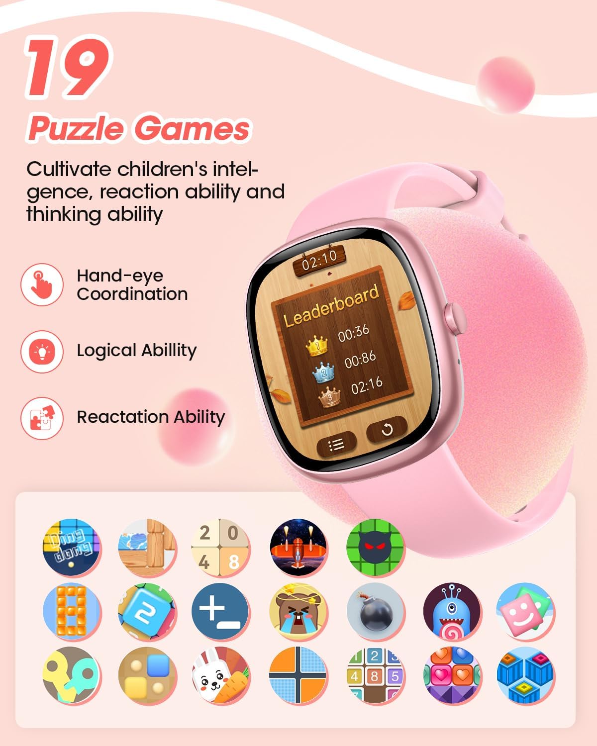 19 Educational Games This kids smart watch provides 19 intellectual games to choose from, which cultivate children’s intelligence, responsiveness and thinking ability. Appropriate entertainment and leisure can help children relax while learning and playing. They gain joy and stimulate children’s rich creativity and imagination.