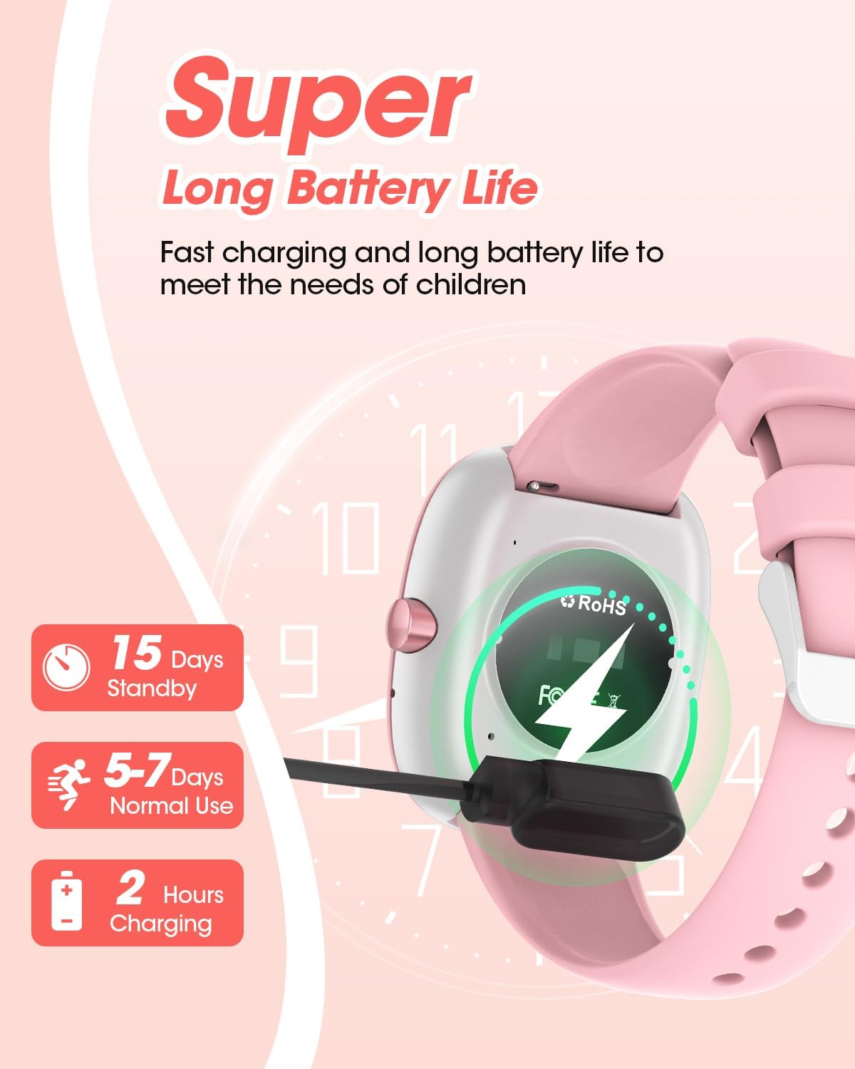 Super battery life and intelligent reminder: children can easily charge the fitness watch with the magnetic charging cable, and the working time can be up to 5-7 days.