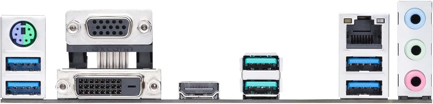 2 x USB 3.2 Gen 2 (teal blue) (2 x Type-A),4 x USB 3.2 Gen 1 (blue) Type-A,1 x PS/2 keyboard/mouse combo port(s),1 x DVI-D,1 x D-Sub,1 x HDMI,1 x LAN (RJ45) port(s),3 x Audio jack(s)
