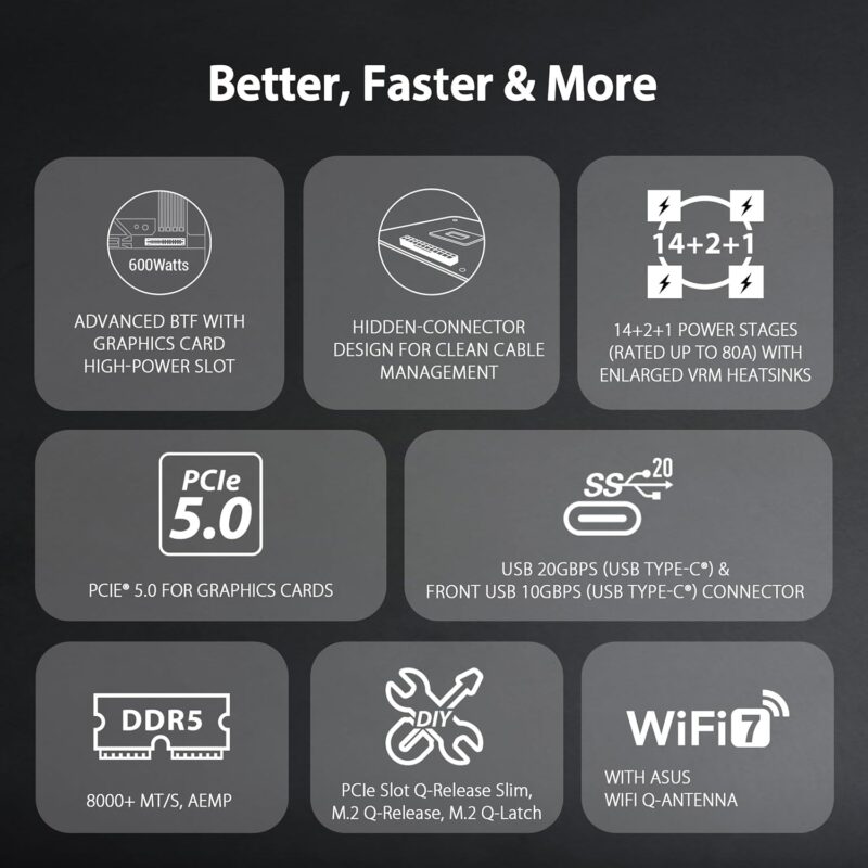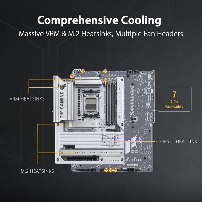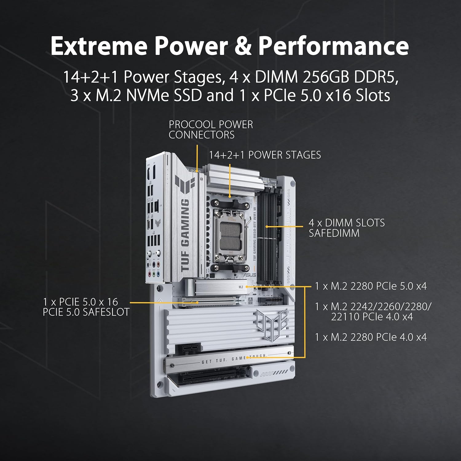 Supports up to 8000+MT/s(OC) with Ryzen™ 9000 & 8000 & 7000 Series Processors, ECC and Non-ECC Un-buffered DIMM*