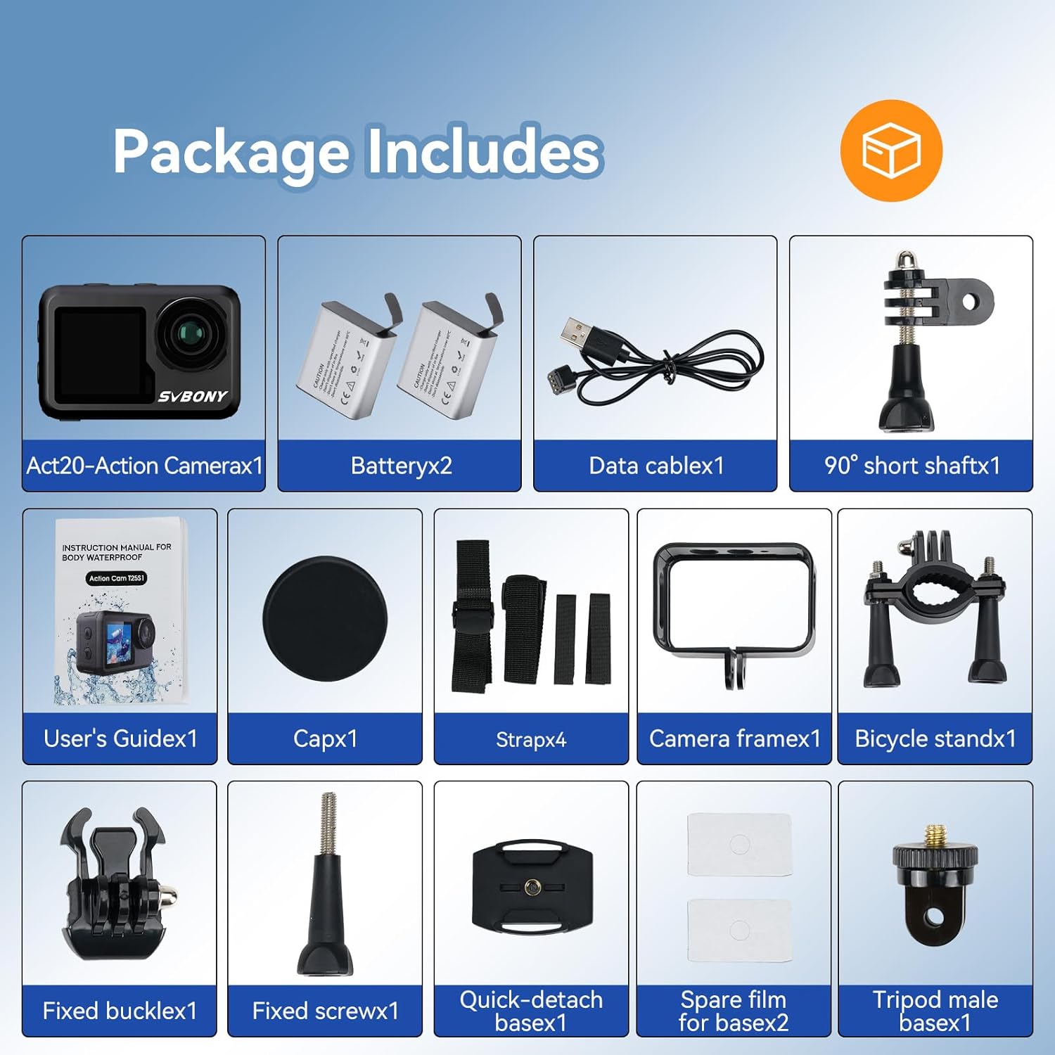 Екшън камера SVBONY ACT20 Action Camera 4K60FPS 20MP WiFi IPX8 2 x 1350mAh
