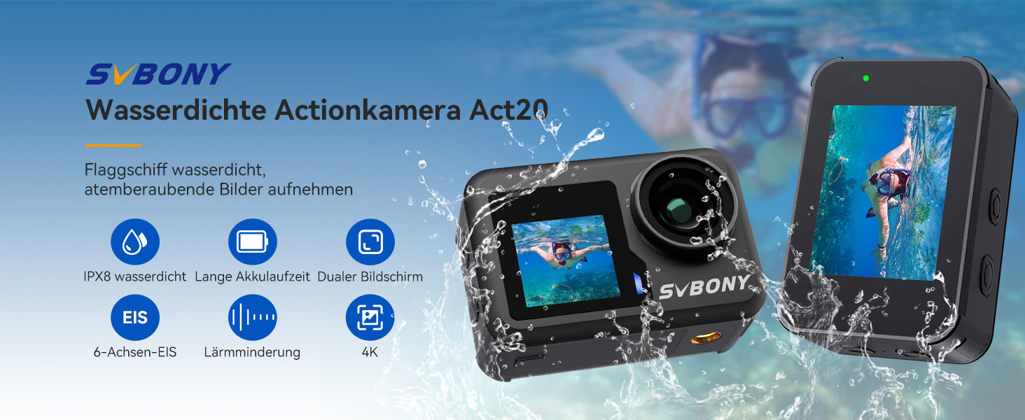 Рекламно видео Екшън камера SVBONY ACT20 Action Camera 4K60FPS 20MP WiFi IPX8 2 x 1350mAh