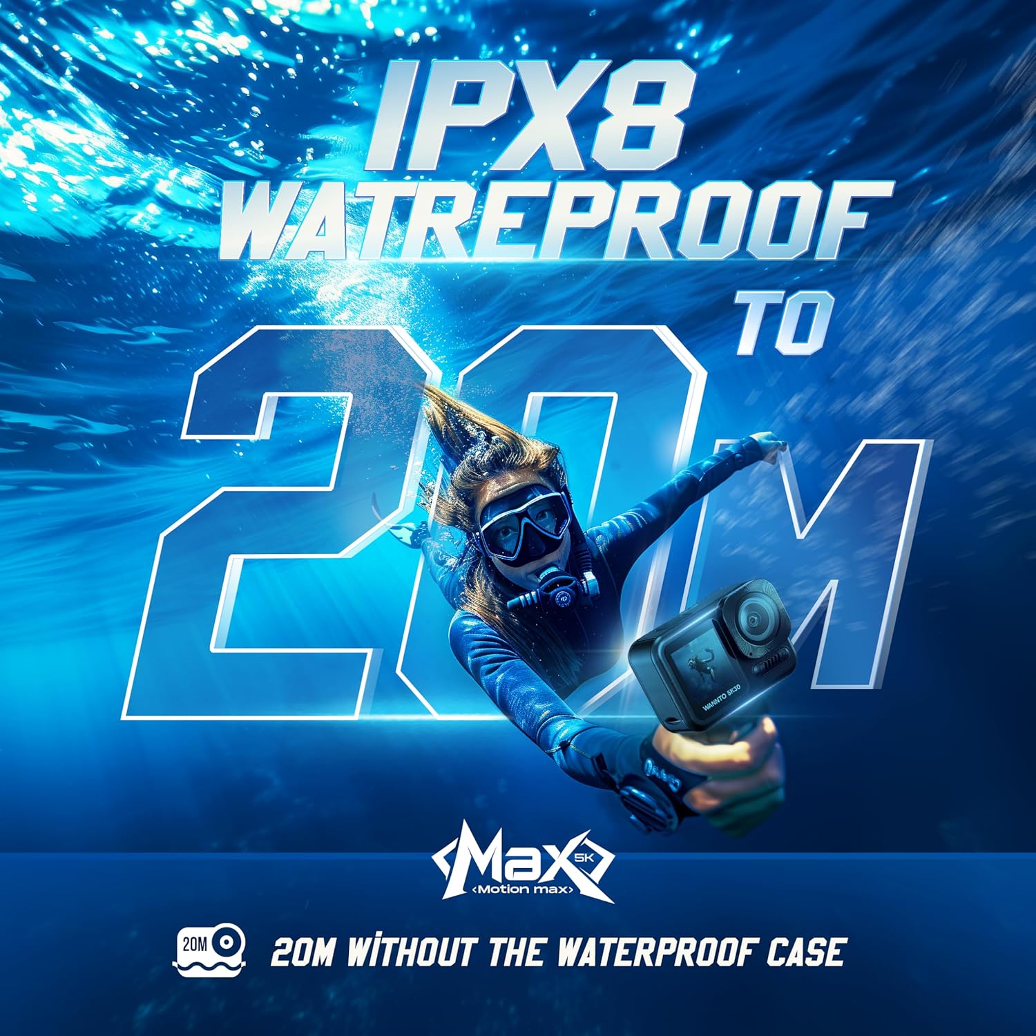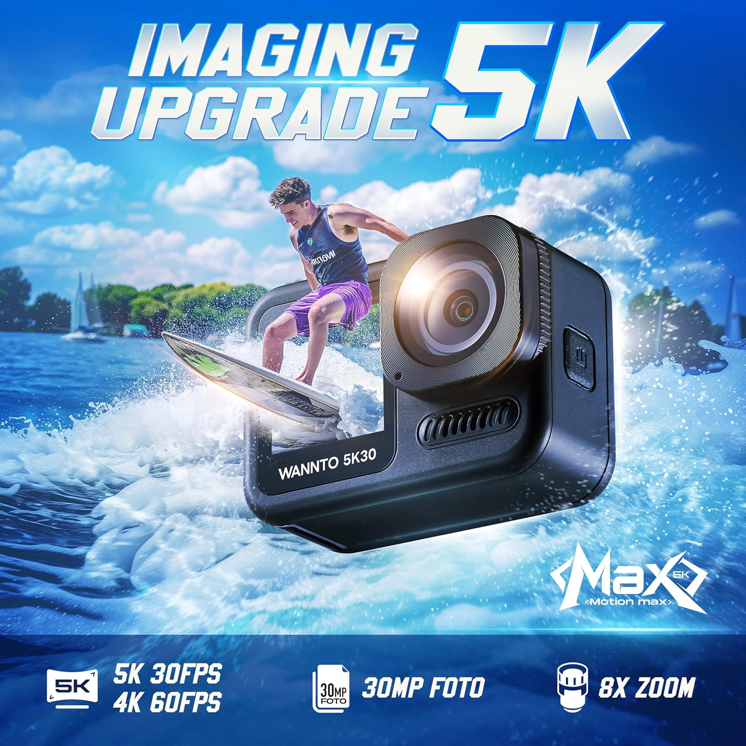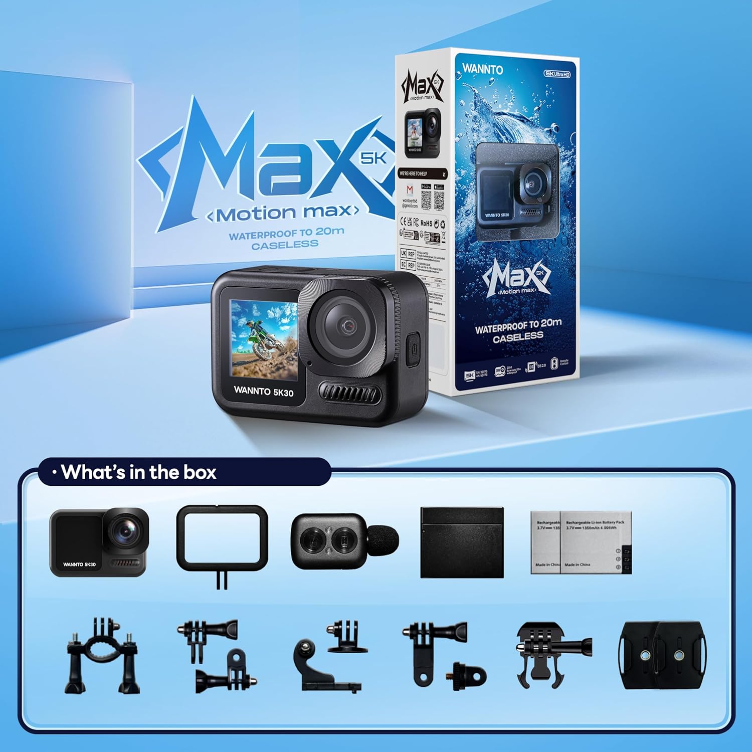 Рекламно видео Екшън камера WANNTO Motion Max Action Camera 5K60FPS 30MP WiFi IPX8 2 x 1350mAh