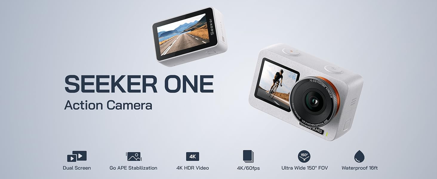 Real 4K 60FPS action cam: The Seeker One uses an Ambarella chip to capture all your big moments in detail, with a high-quality lens that can record up to 4K/60FPS at 100Mbps.