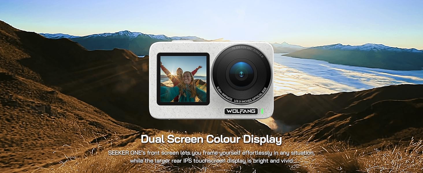 Dual screen colour display: with the front screen of the Seeker One, you can effortlessly take a picture in any situation, while the larger IPS touchscreen display on the back is bright and vibrant.