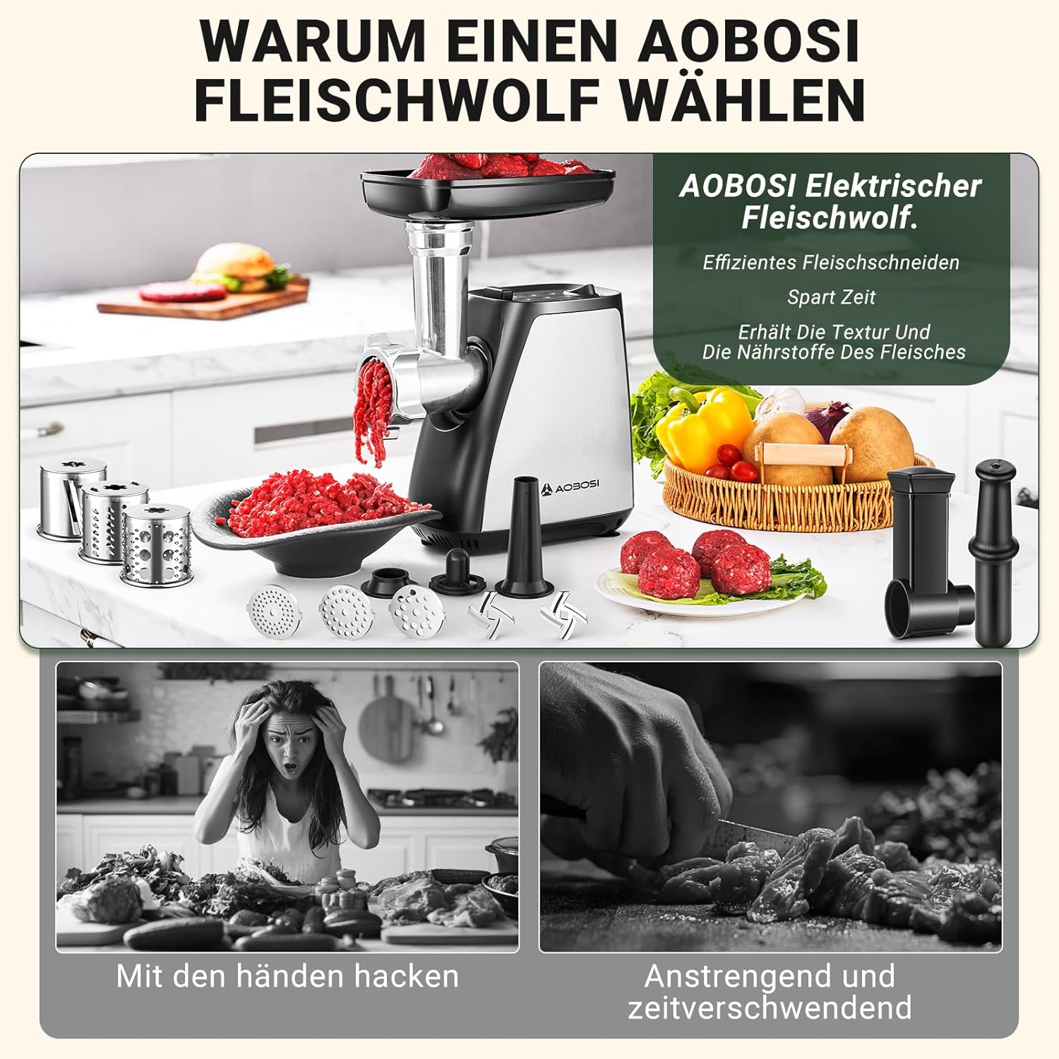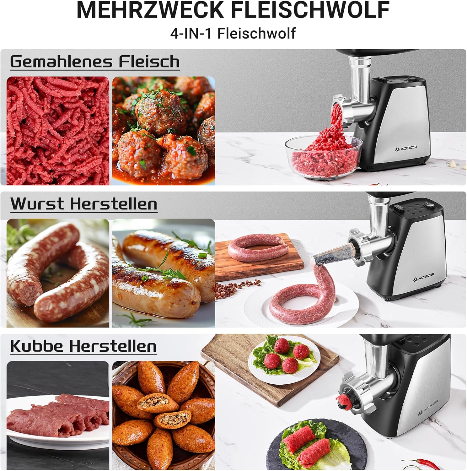 Електрическа Месомелачка AAOBOSI 3-in-1 Multi Electric Meat Grinder