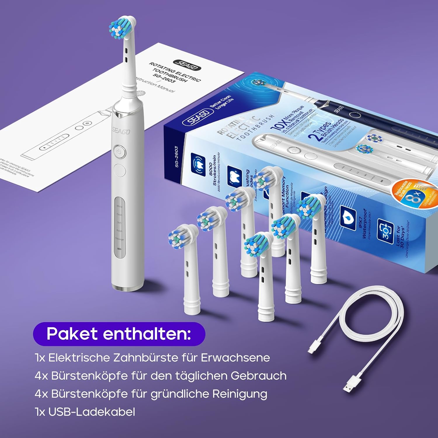 Ел. четка за зъби Seago SG-2603 Sonic White