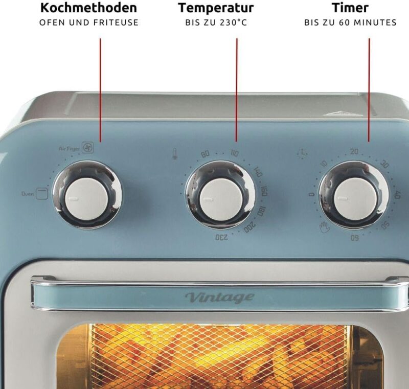 Еър Фрайър Ariete Vintage 4632 е 2-в-1 устройство, което комбинира функциите на еър фрайър и традиционен фурна. Това устройство е подходящо за всички, които искат да готвят вкусни и здравословни ястия, но и да имат възможността да приготвят и традиционни ястия във фурната.