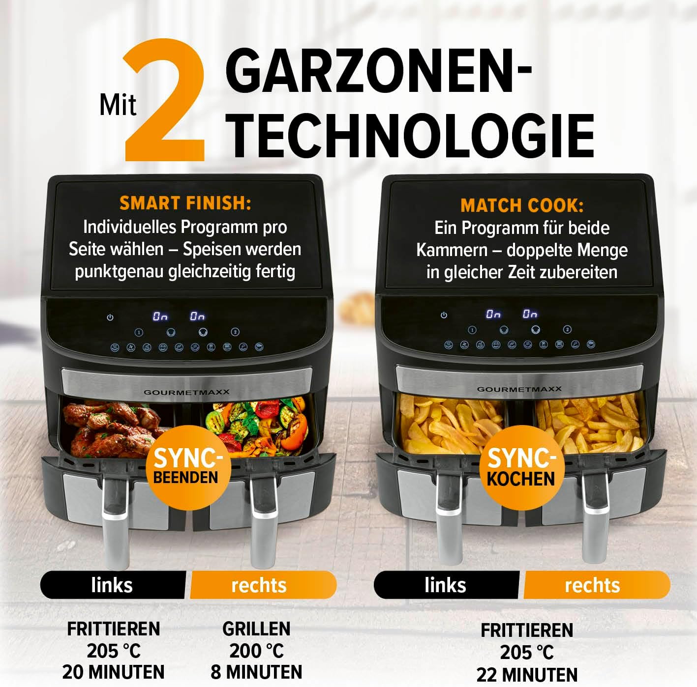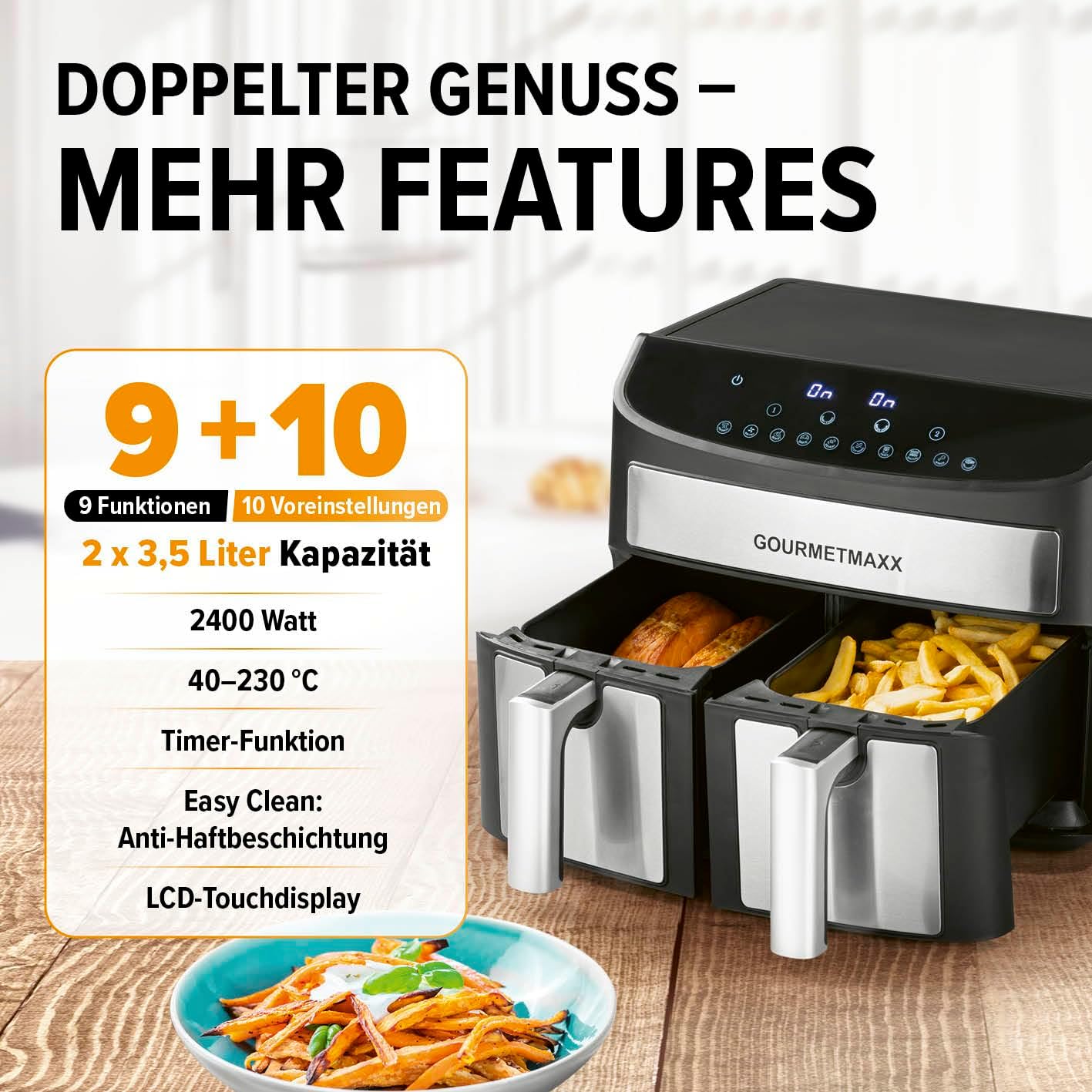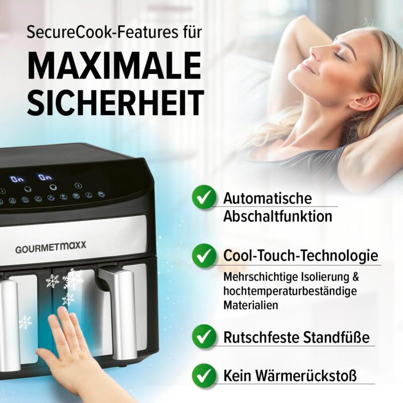 **Еър Фрайър GOURMETMAXX Dual Zone Hot Air Fryer 2 x 3.5L -_healthier and tastier cooking, twice the fun!**