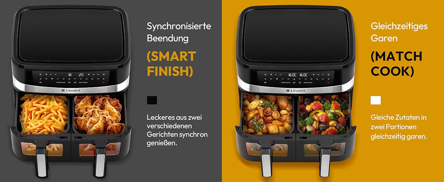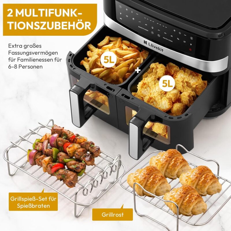 - Еър Фрайър Llivekit Dual Zone Hot Air Fryer 10L