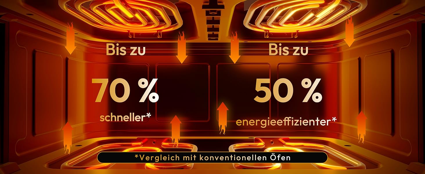- Бързо готвене: Този продукт може да готви ястията до 50% по-бързо от традиционните фритюрници.