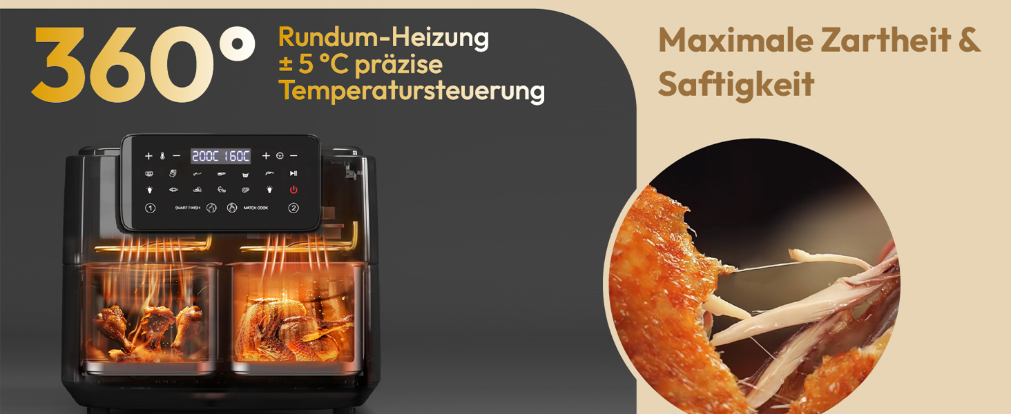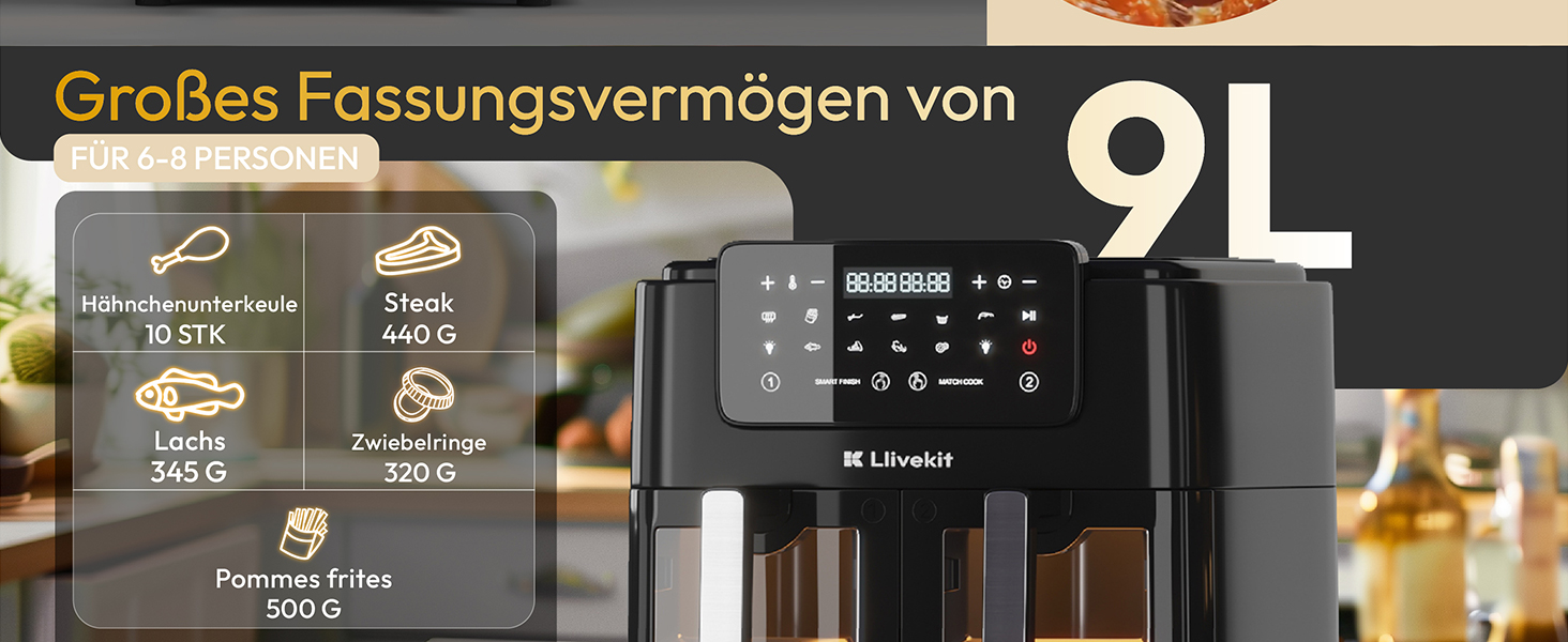 Предимства на Еър Фрайър Llivekit Dual Zone Hot Air Fryer 9L