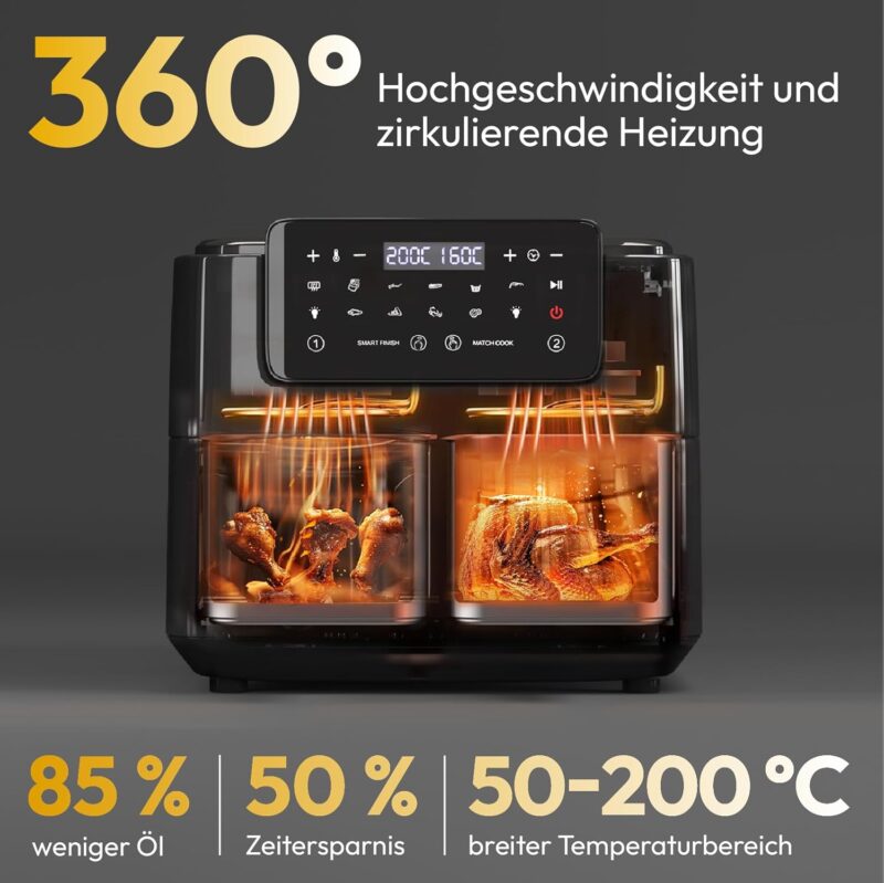 Открийте възможностите на здравословното готвене с Еър Фрайър Llivekit Dual Zone Hot Air Fryer 9L. Този иновативен уред е проектиран да приготвя вашите любими ястия с минимално количество мазнини и максимална вкусова интензивност. С двузонната си технология, този еър фрайър е идеален за семейства и приятели, които искат да се насладят на вкусни и здравословни ястия.