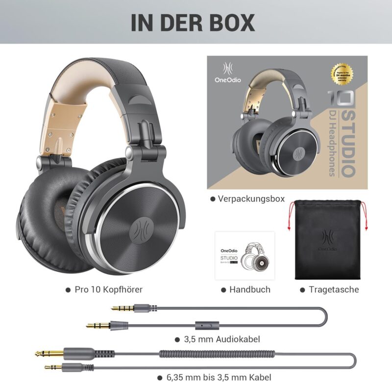 Жични слушалки с микрофон OneOdio PRO-10 On-Ear Headphones Grey-Gold