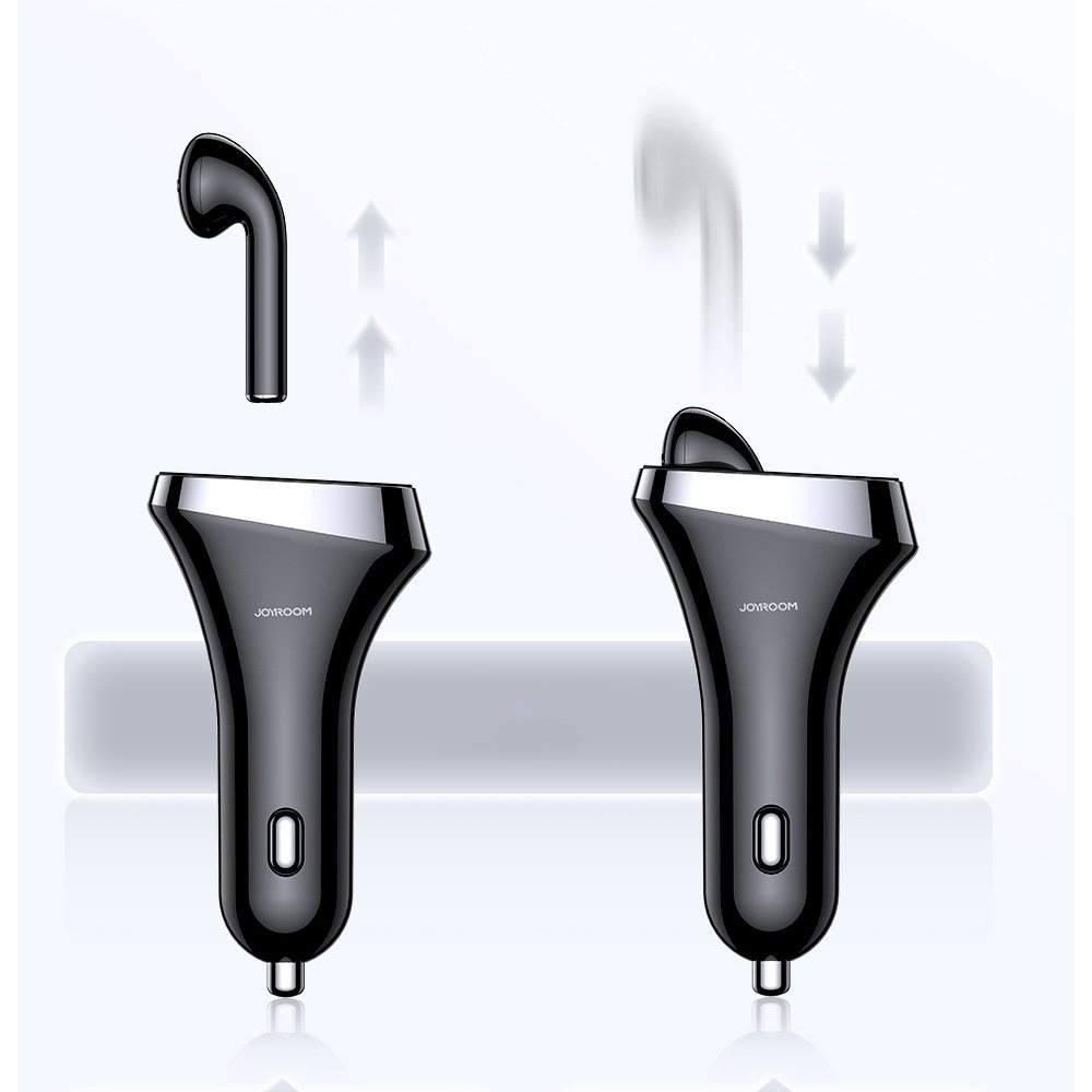 Joyroom car charger with wireless earphone 2x USB Bluetooth 5.0 30W 2.1 A Quick Charge 3.0 (JR-CP2) When driving a car, you surely realize that an unexpected phone call forces you to pull over and answer the call on the side of the road. Sadly you cannot do that at all times and eventually an important call is often rejected. The solution is a Joyroom set which combines charging through two USB ports and a built-in wireless earphone. Specification: Brand: Joyroom Type: Car charger with wireless earphone Frequency: 2.400GHz – 2.483GHz Material: PC + aluminum Weight: 31g Earphone battery capacity: 35mAh Resistance: 32Ω Power: 3mW Music time: 2,5h at 70% of volume Talk time: 2,5h at 70% of volume Earphone charging time: 1h Input: DC 12V – 24V Bluetooth: 5.0 Content of the set: 1x Car charger with wireless earphone Major features: High durability and resistance to damage Low weight Wireless earphone Two practical USB outputs High-capacity battery of the earphone Minimalist and stylish look High universality of the set What makes the set stand out is undoubtedly an elegant design which matches any car interior – irrespective of the model. The device is connected to the standard car port 12V/24V.