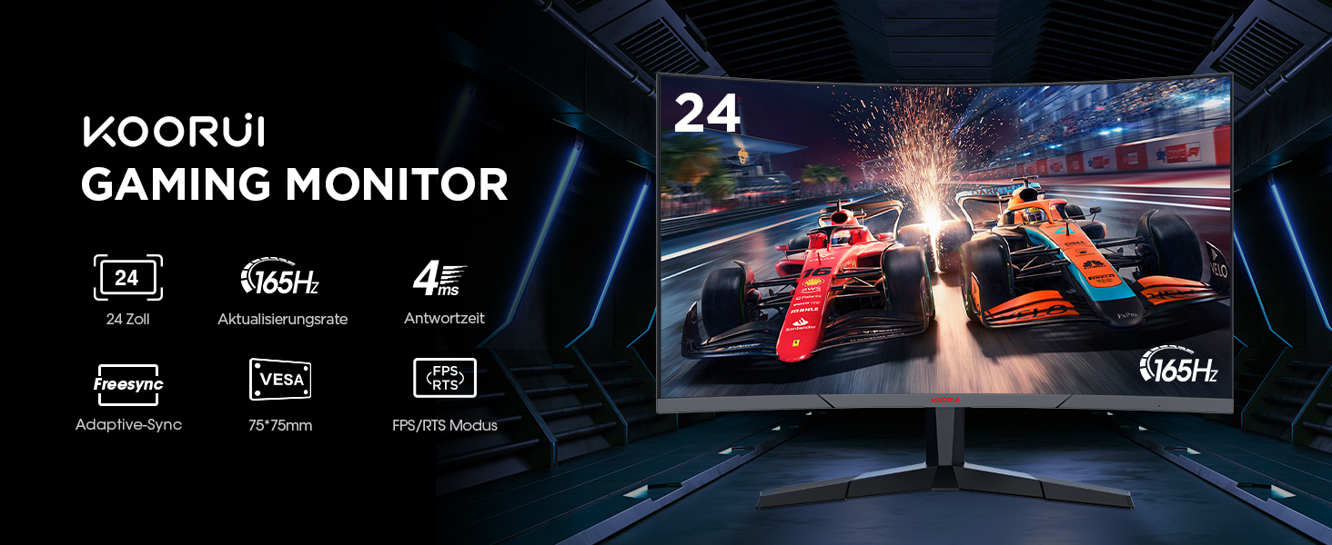 Извит монитор KOORUI 24E6CA Gaming Monitor 24 Inch 180Hz FHD