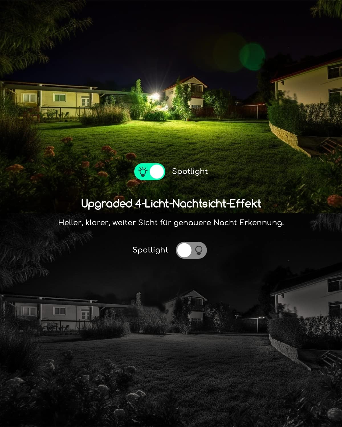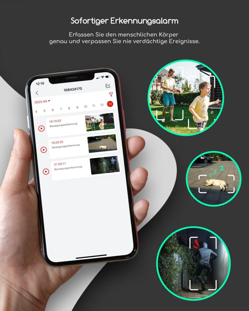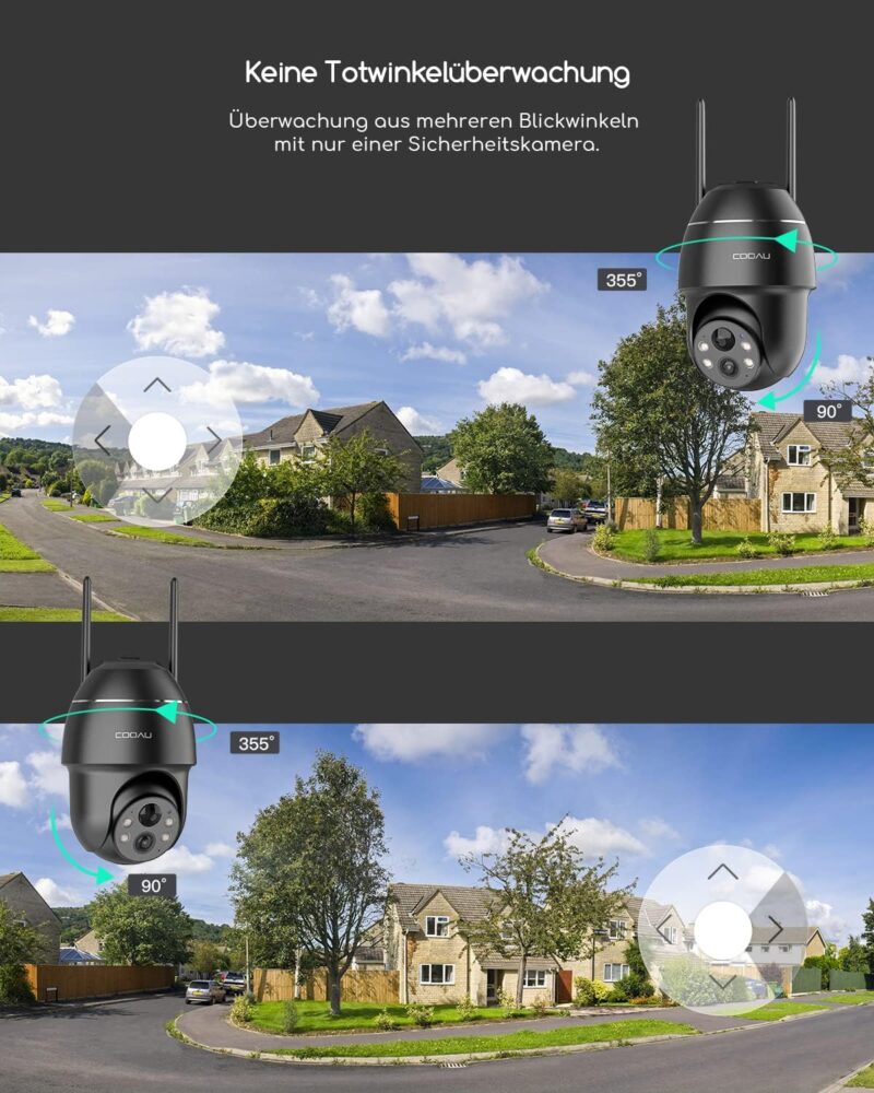 Multifunctional surveillance camera: on this basis, 5MP also integrates all other characteristic functions of 3MP, including but not limited to: Works with Alexa, improved 4-light colour night vision, 0.5/2/4 times playback speed, person detection, instant alarm, 360° all-round monitoring, sound and light alarm, secure storage. 100% Wireless, easy installation, remote monitoring, etc., to meet all your needs.