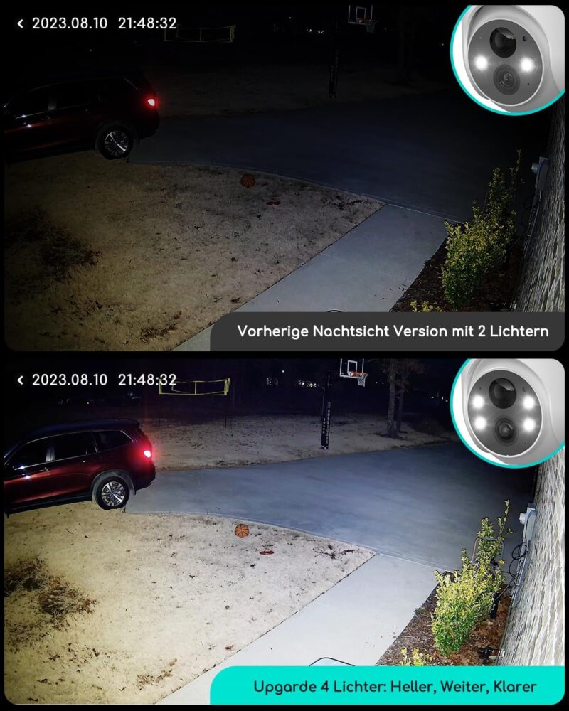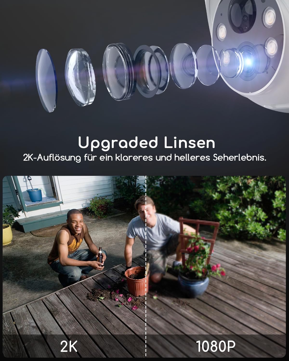 2K FHD and colour night vision: this outdoor WiFi surveillance camera is equipped with a 2K resolution and 4 combination lights to deliver a sharper and smoother image quality than 1080p. And when you turn on the smart or colour night vision mode, you can easily capture important details of an incident even at night when there is no lighting (e.g. colour of clothes, colour of vehicles, means for camouflage, characteristics of suspects), so that the police provide valuable information.