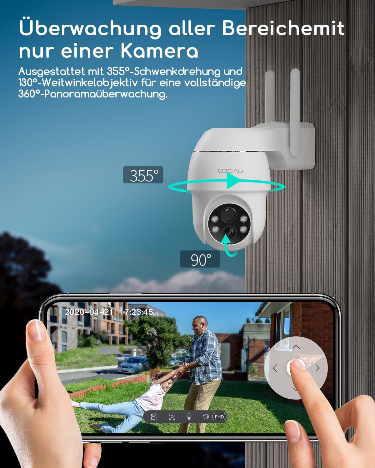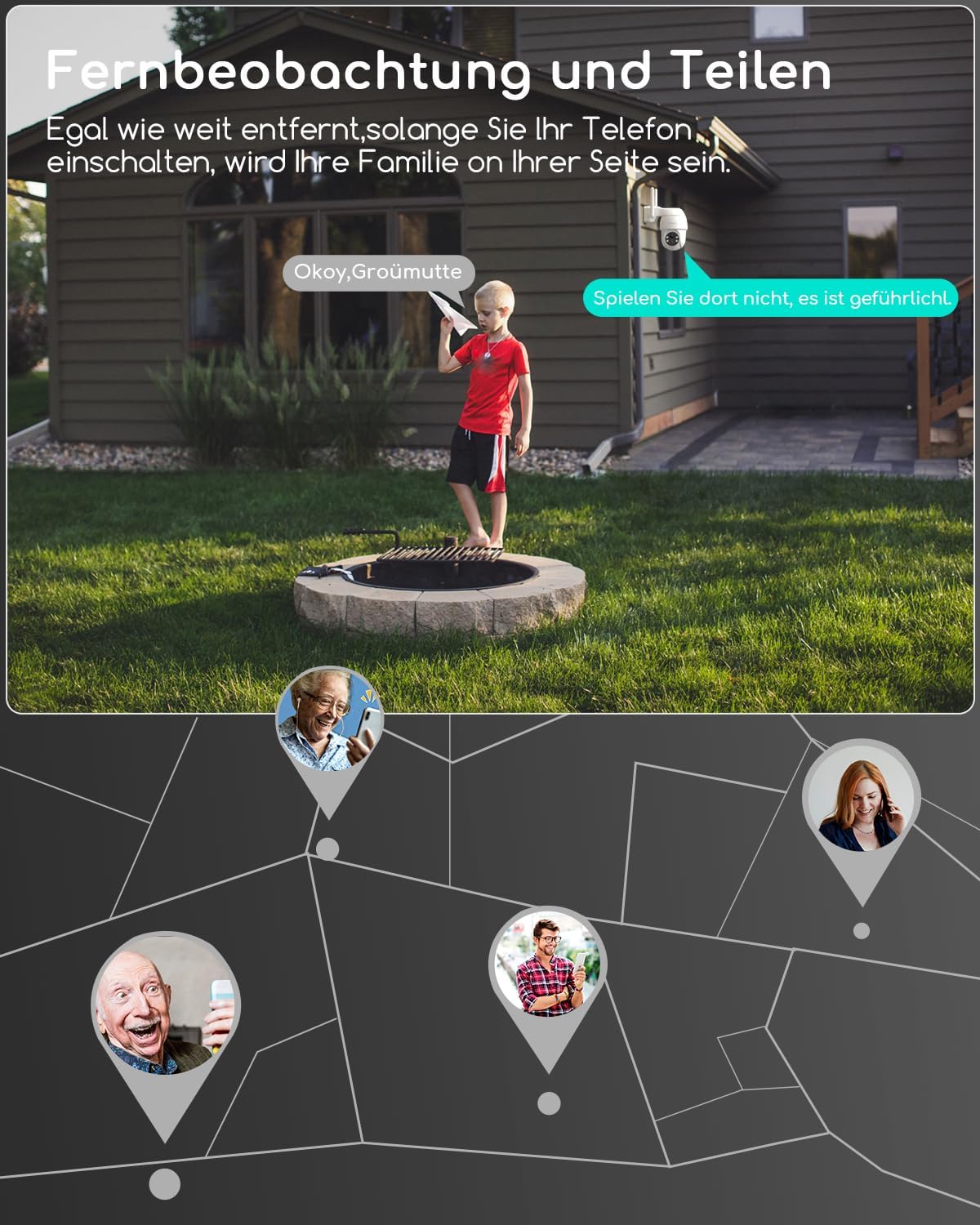 Remote monitoring in real time: this 360° viewing angle of the outdoor surveillance camera can cover all areas, so that all suspicious behaviours cannot hide anywhere. You can access our WiFi camera from anywhere to control it via the app, e.g. change the viewing angle, communicate with visitors, see in real time, what is happening and share with your family to ensure the safety of your .