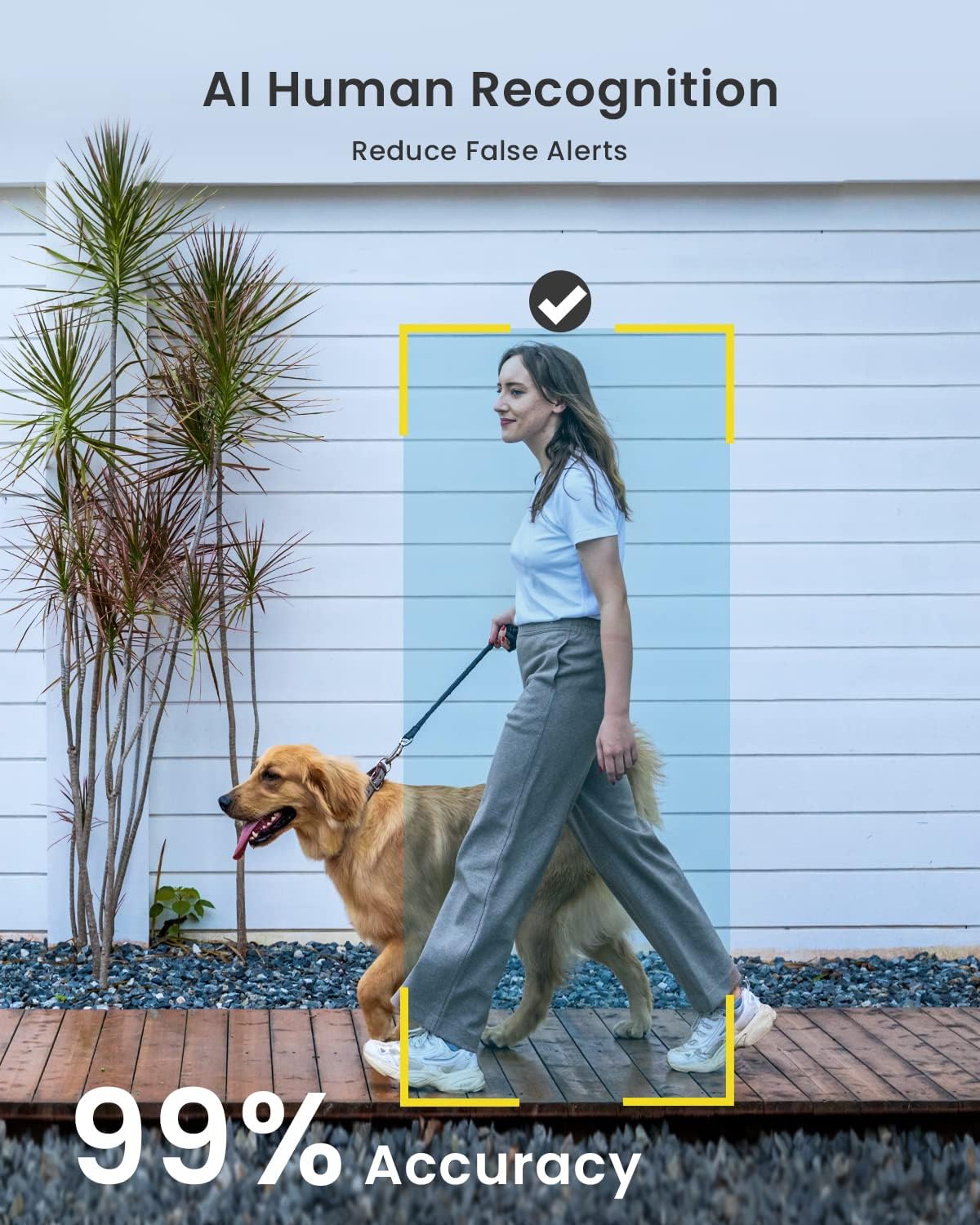 PIR Motion Detection & Siren Spotlight Alarm: ieGeek battery camera is equipped with PIR motion sensor and advanced AI algorithm, which significantly enhance humanoid identification and reduce false alarms. The siren and spotlight will turn on to warn potential intruder as soon as movement is detected at night. When camera detect movement, it start to record and send real-time notifications to your phone, reminding you to check suspicious activity in time.