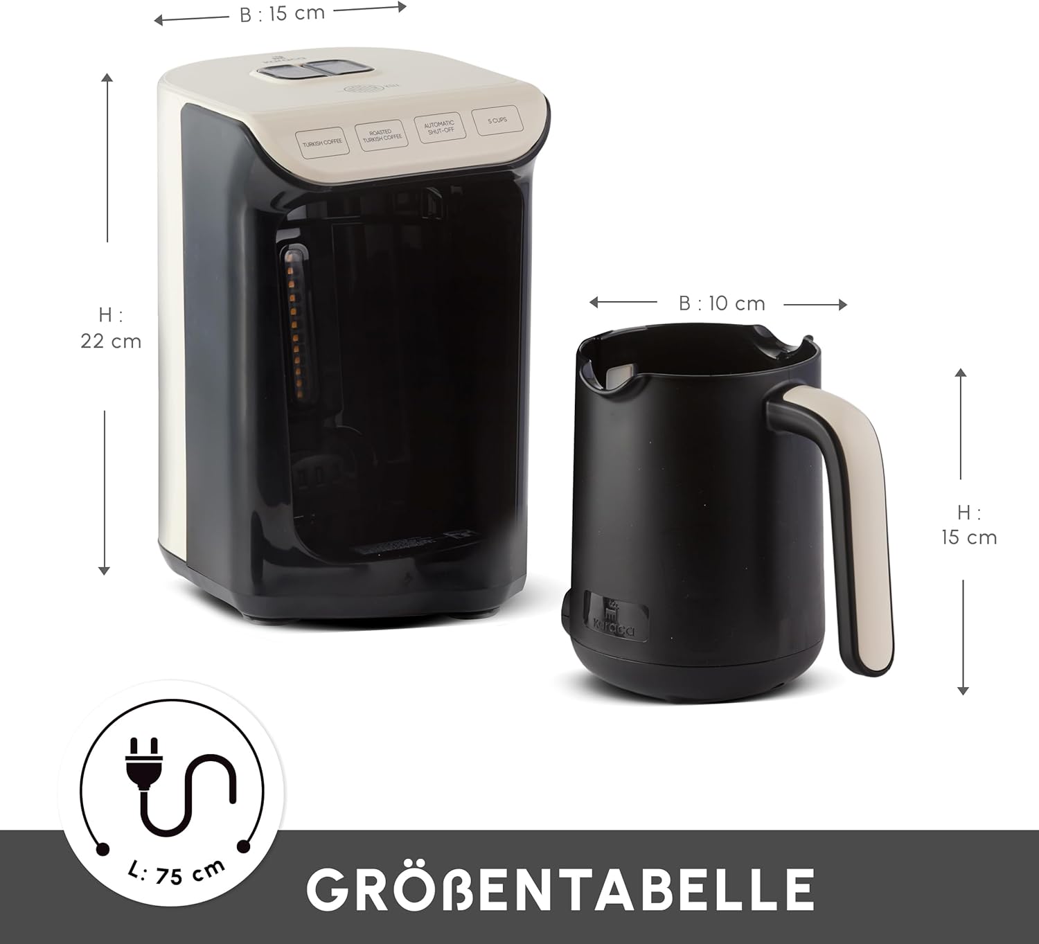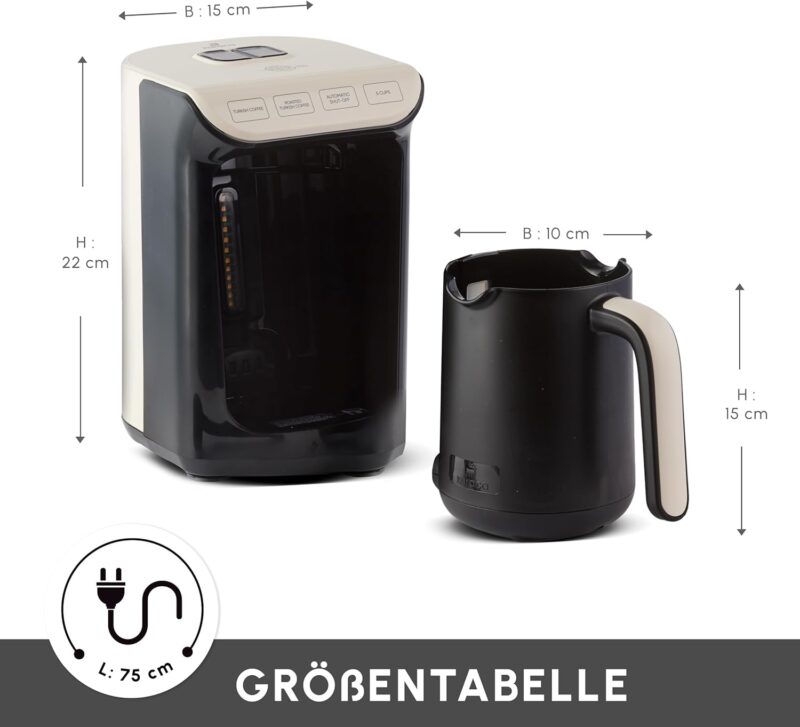 Кафемашина за турско кафе KARACA Hatır Roast Turkish Coffee Machine Cream е подходяща за всеки, който търси автентично турско кафе с висококачествен вкус и аромат. Това е идеалният избор за домашно или професионално използване, като същевременно е и стилишно допълнение към всеки интериор.