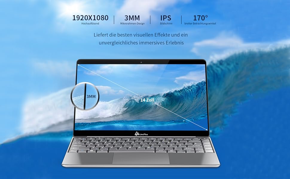 Full HD laptop: the LincPlus P4 netbook is equipped with a 14 inch IPS large full HD display (1920 x 1080), which offers you a larger field of view as well as clearest and most vibrant images. At the top of the screen, there is a 2 megapixel front camera that allows you to comfortably participate in online meetings.
