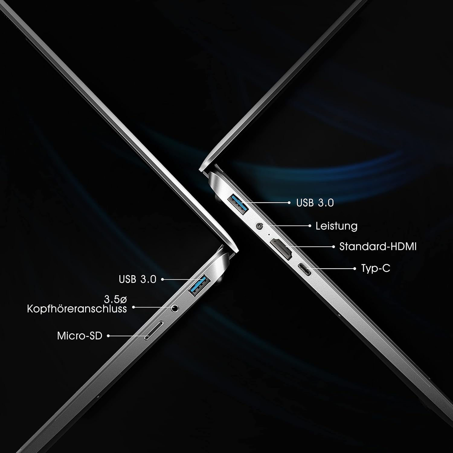 Portable laptop: the lightweight and slim portable device with numerous interfaces, German QWERTZ keyboard and quiet heat dissipation keeps your daily life connected, whether you are in the office, in the library or on a business trip. The notebook has the following interfaces: HDMI x 1, headphone jack x 1, USB 3.0 x 2, type C x 1, SD card x 1.