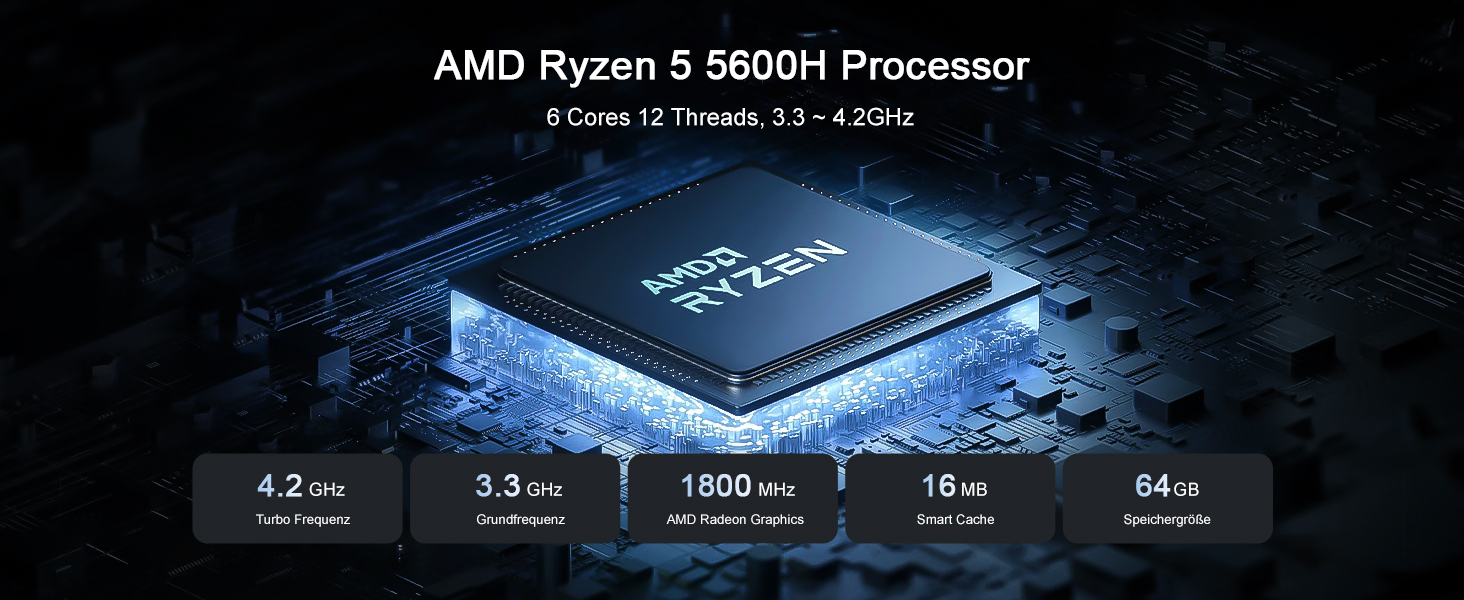 Мини компютър ALLIWAVA H56 Mini PC 16GB-512GB M.2 SSD AMD Ryzen 5 5600H