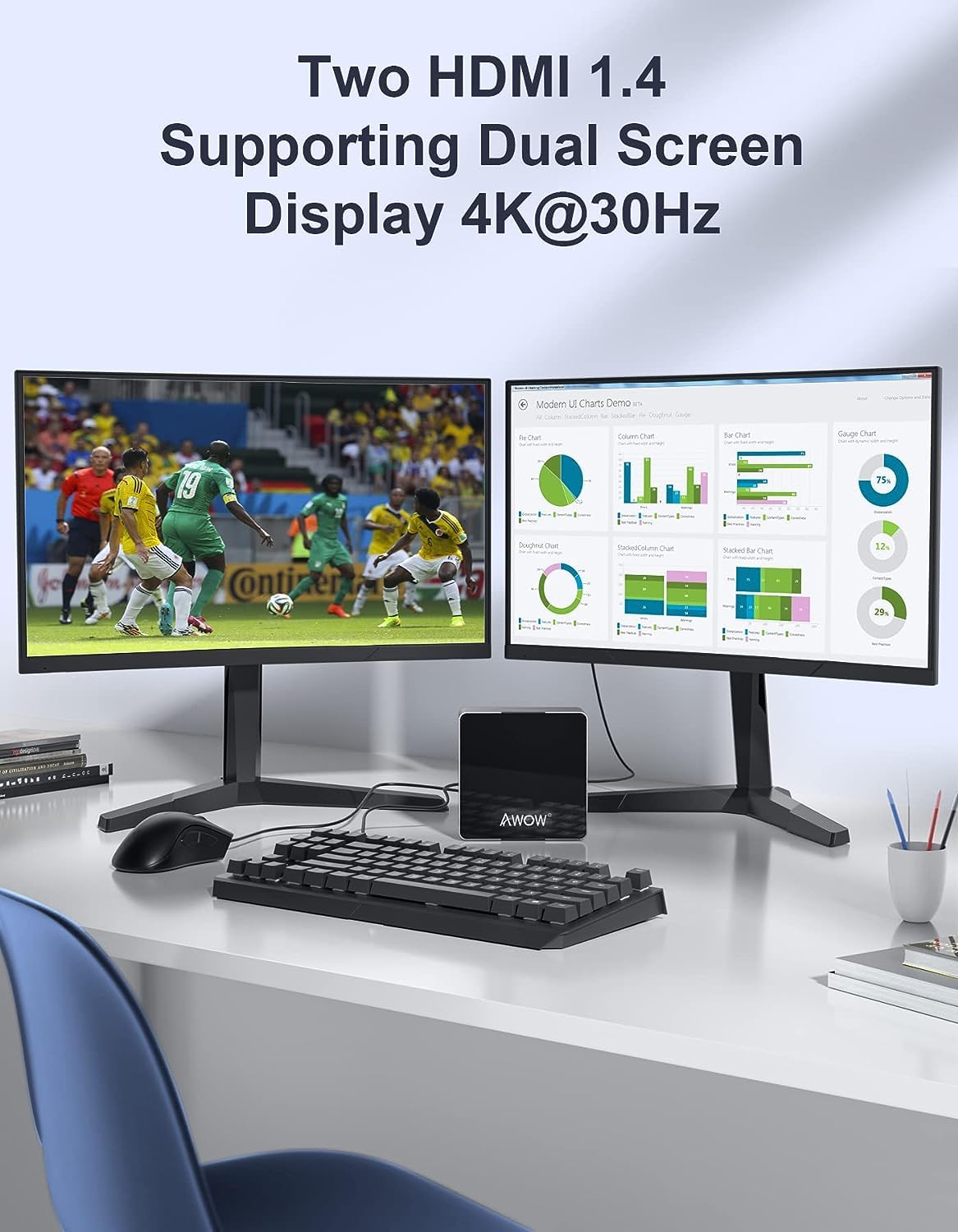 Мини компютър AWOW Mini PC 8GB-128GB M.2 SSD Intel Celeron J3455
