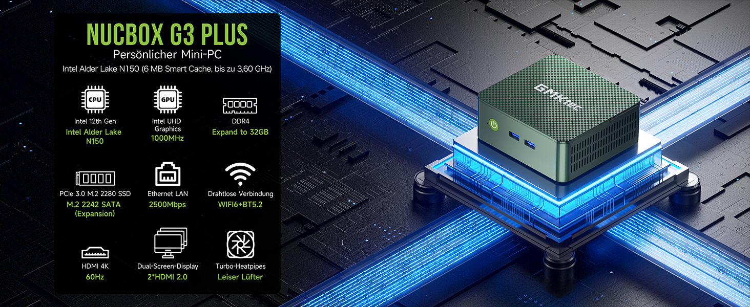 Мини компютър GMKtec G3 Plus Mini PC 8GB-256GB M.2 SSD Intel Twin Lake N150