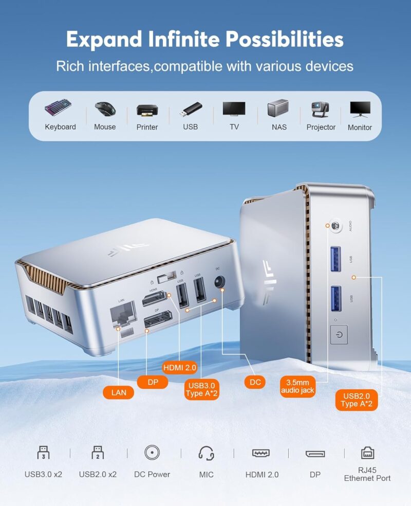 Мини компютър NiPoGi Mini PC AK1PLUS 16GB-512GB M.2 SSD Intel Alder Lake-N97
