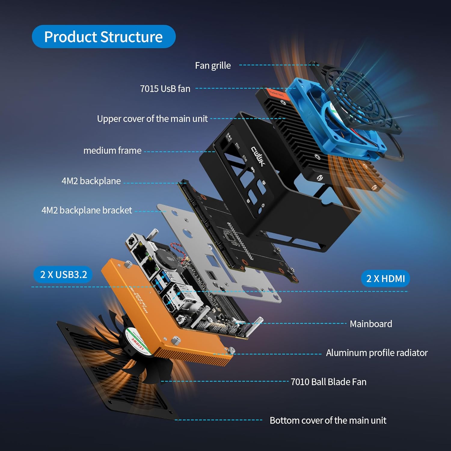 Fan installation: support additional 7015 USB fan on top (included)
