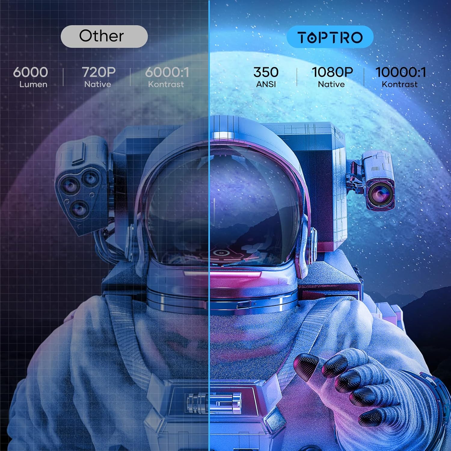 HiFi speaker and Bluetooth 5.1 upgrade system: the projector has built-in dual high-fidelity stereo speakers equipped with an innovative heat dissipation system and noise reduction technology that effectively suppresses fan noise. Use a Bluetooth 5.1 system to connect your speakers and headphones for an excellent listening experience. So you and your family can enjoy home cinema at home.