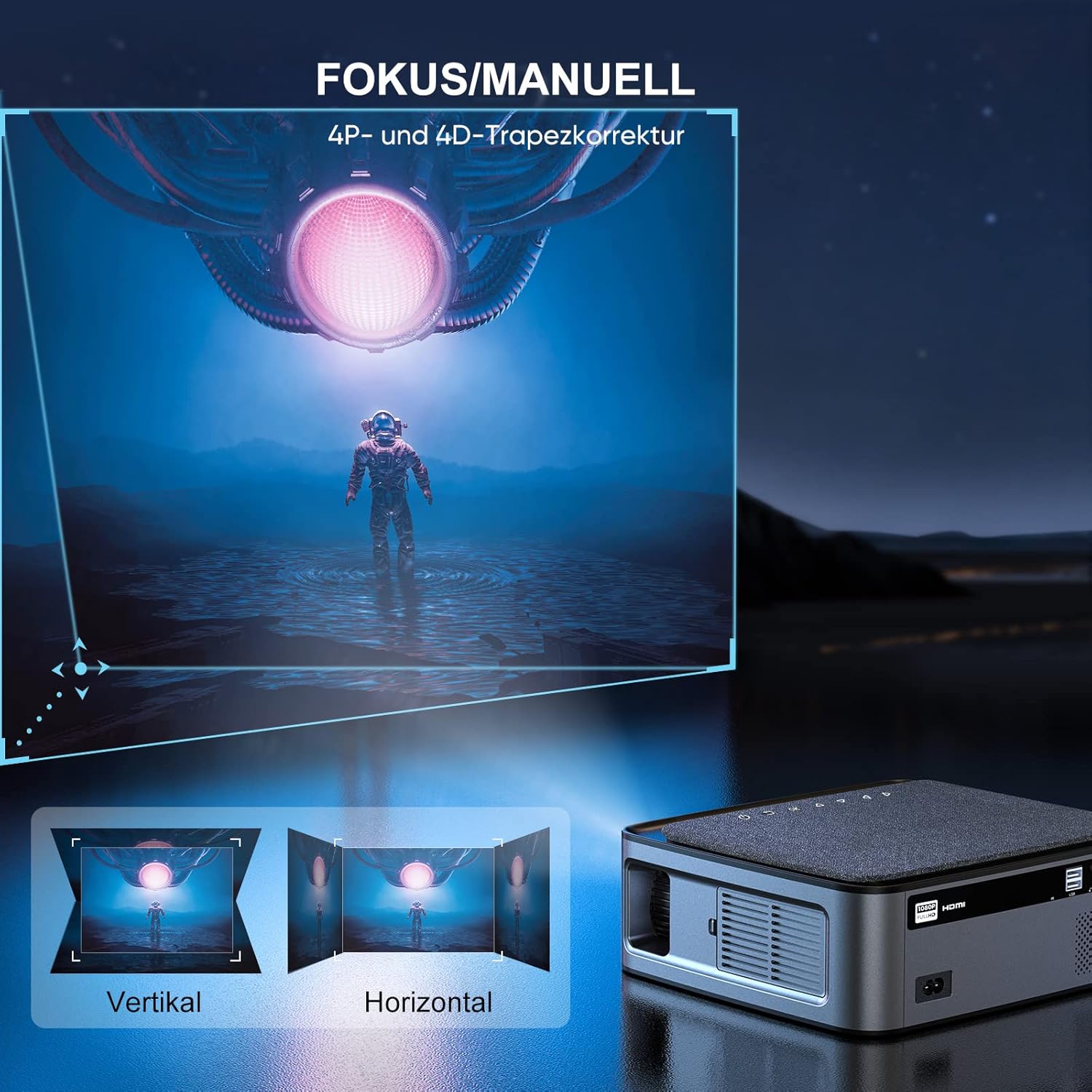 4D/P keystone correction and professional technical support: the projector is equipped with horizontal and vertical 4D correction, advanced 4P keystone correction.