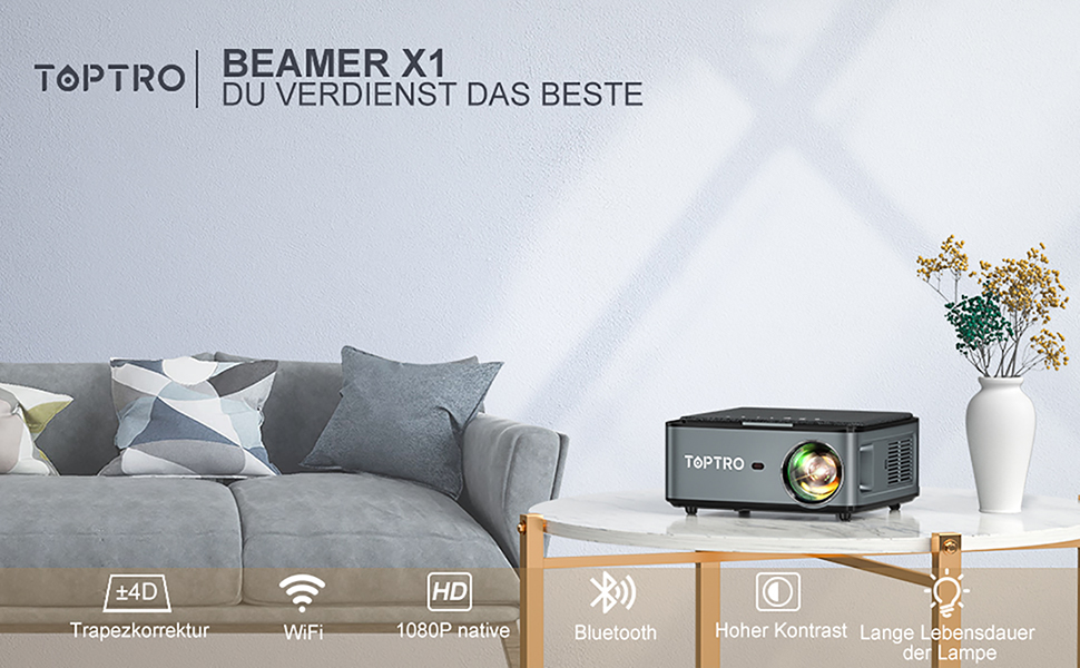 Мултимедиен проектор TOPTRO BEAMER X1 Full HD 1080P 4K Support 25000 Lumen WiFi