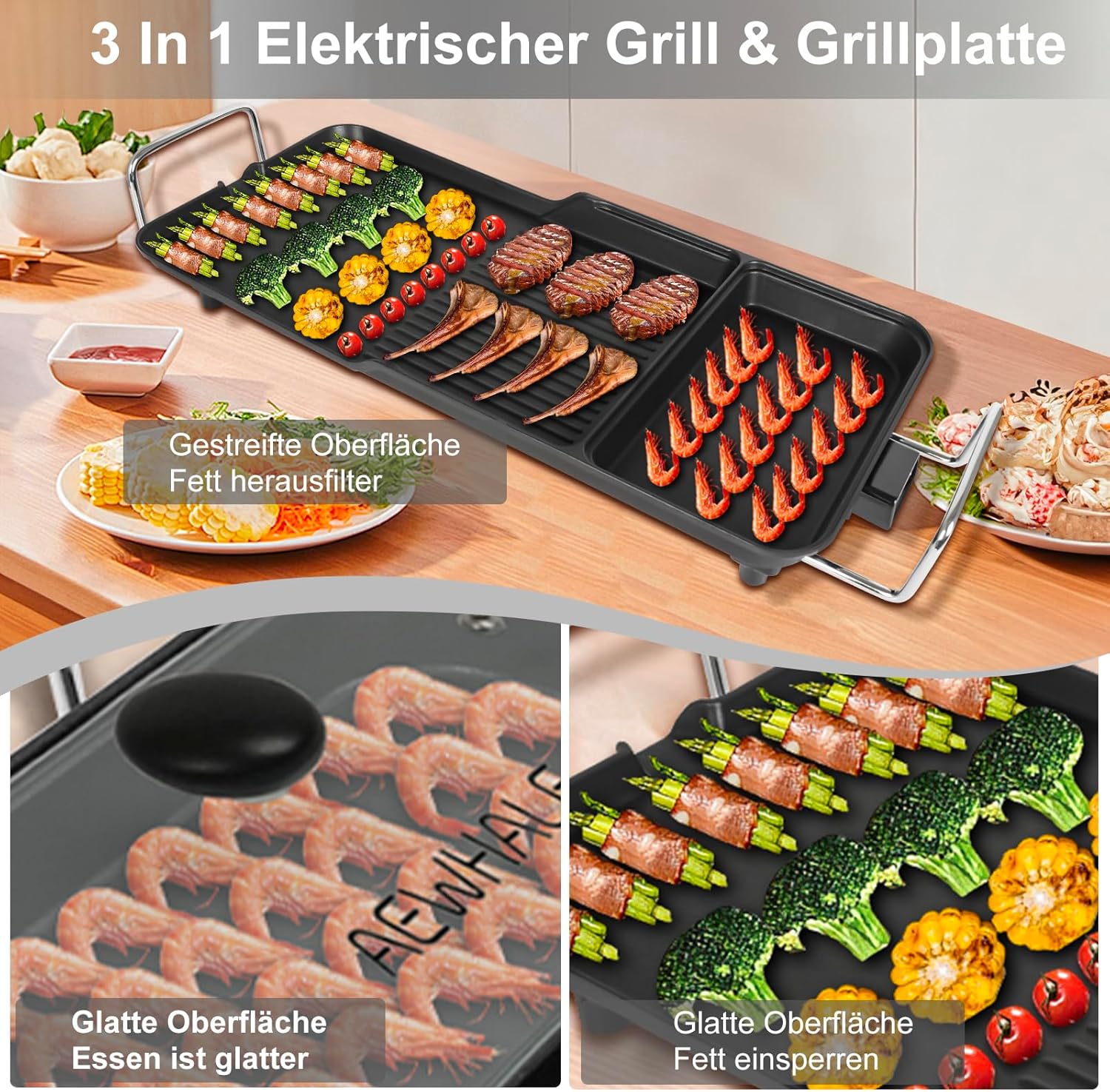 Електрически тиган и грил AEWHALE CY-030 3-in-1 Multifunctional Pan & Grill Silver